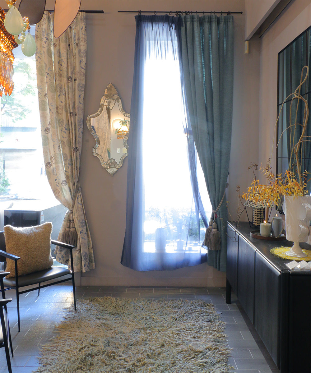 オーダーカーテン・ヘラ・ブルー(2枚)