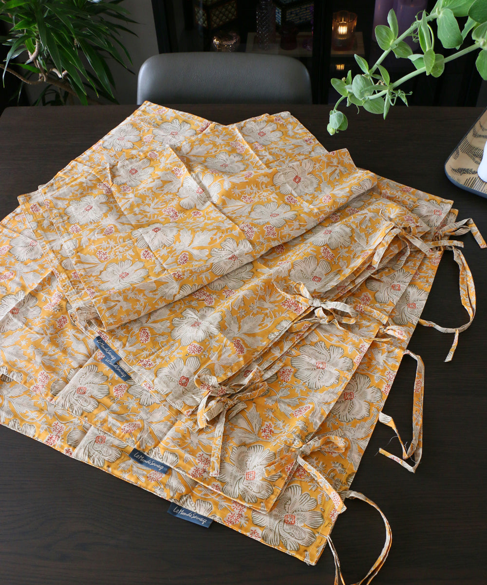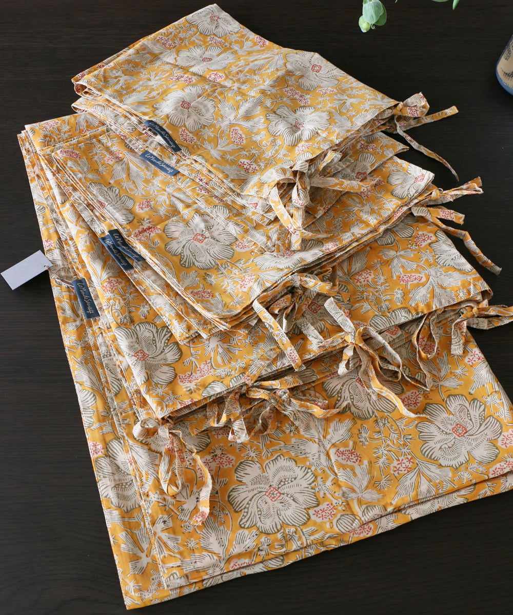 ブロックプリントならではの、水彩画のようなタッチが魅力。
