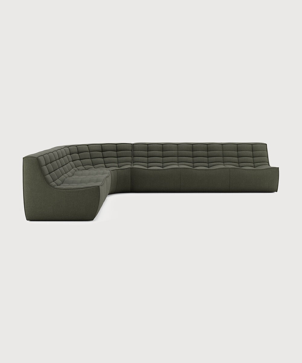 エスニクラフト N701ソファセット<3+2シーター +90°ラウンドコーナー>モスグリーン(エコファブリック)【取寄せ品】