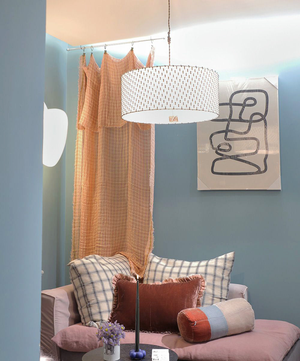 異素材やカラフルなクッションと組み合せても◎
