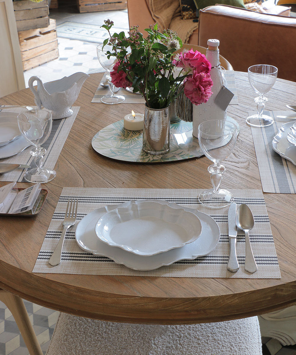 OPJET PARIS PVCランチョンマット・リネンxグレー30x45