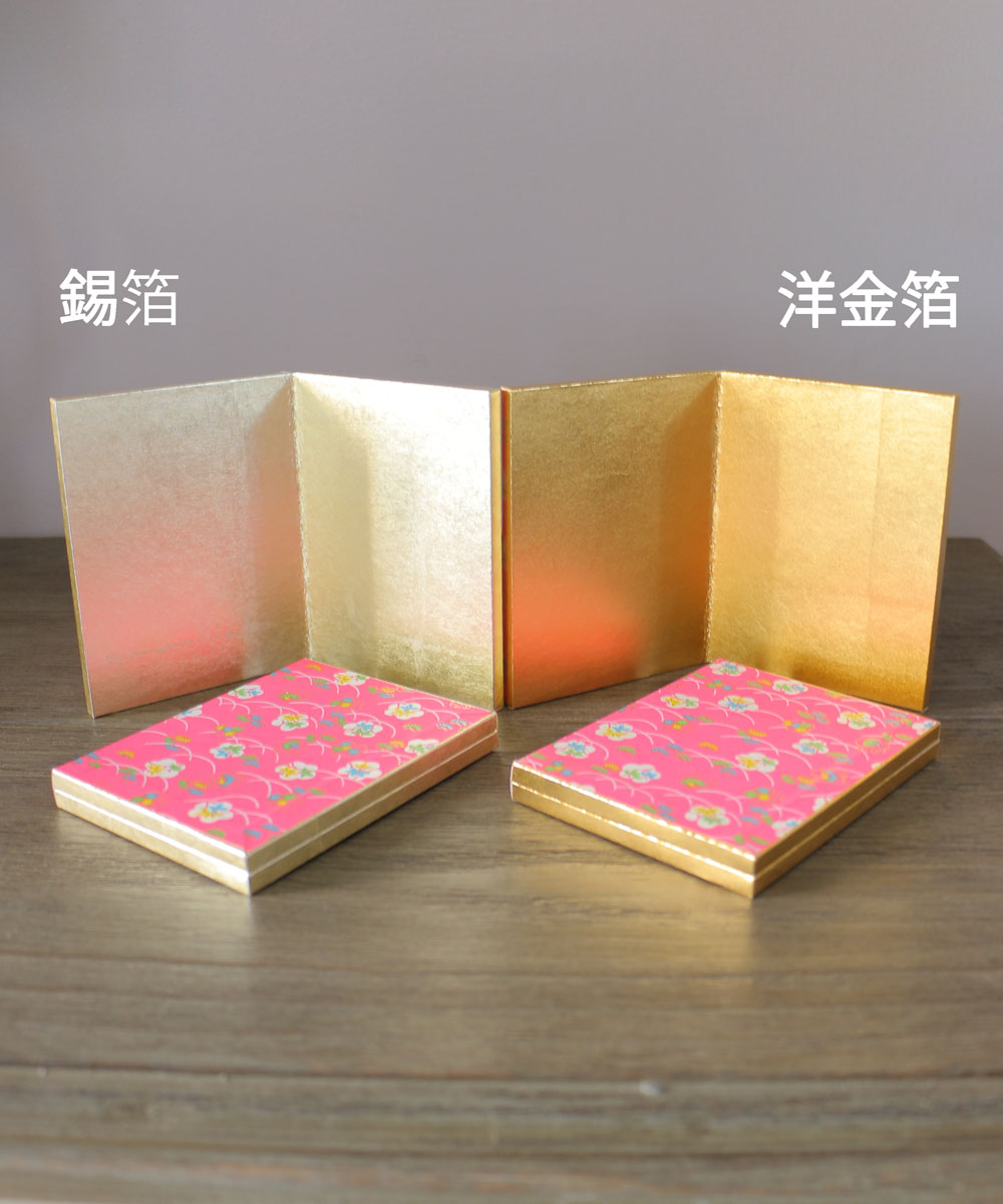 You can choose from reddish gold Western gold leaf and champagne gold-like tin leaf.