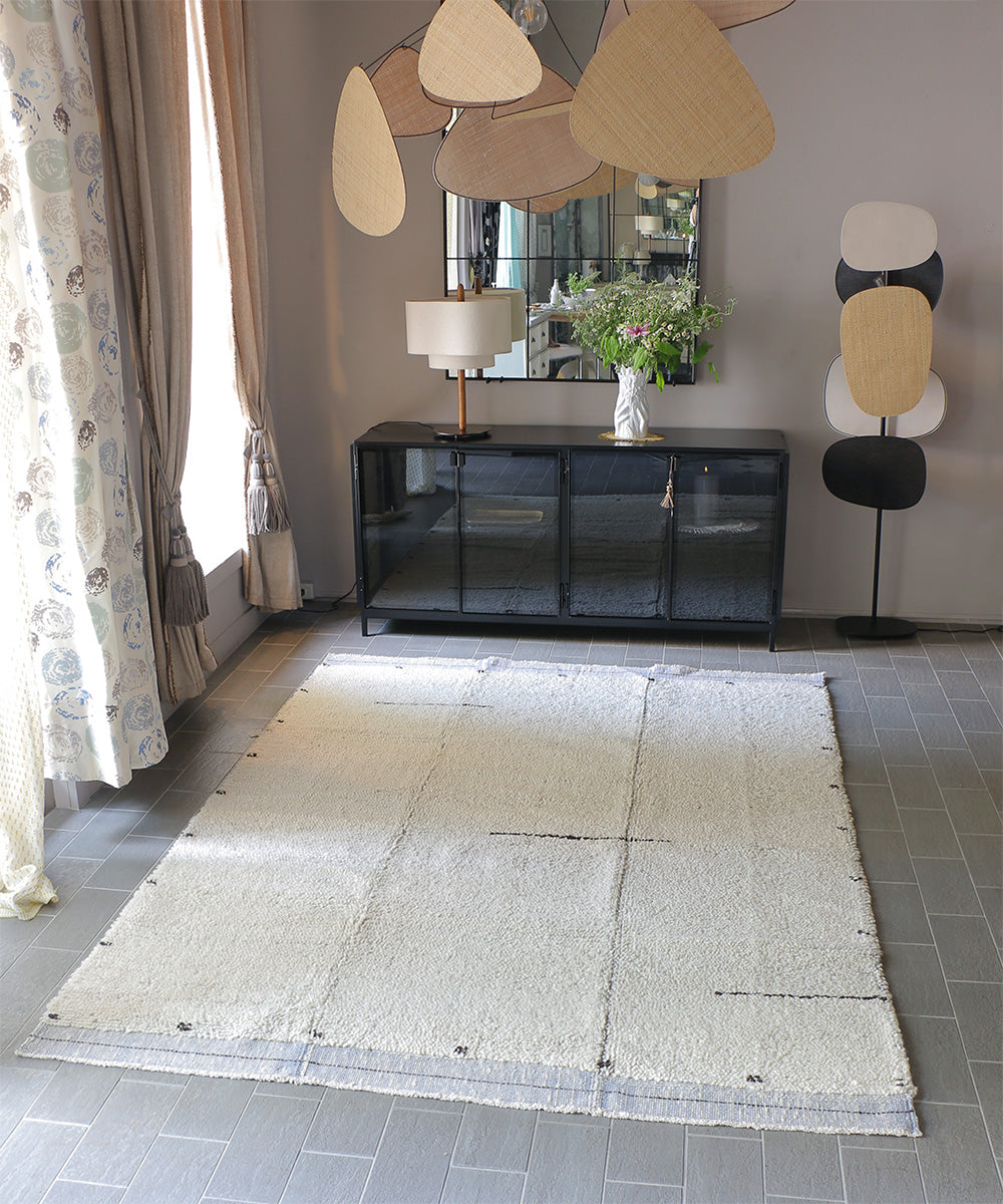単色ラグにはない、シンプルながらも奥行きのあるデザイン。
