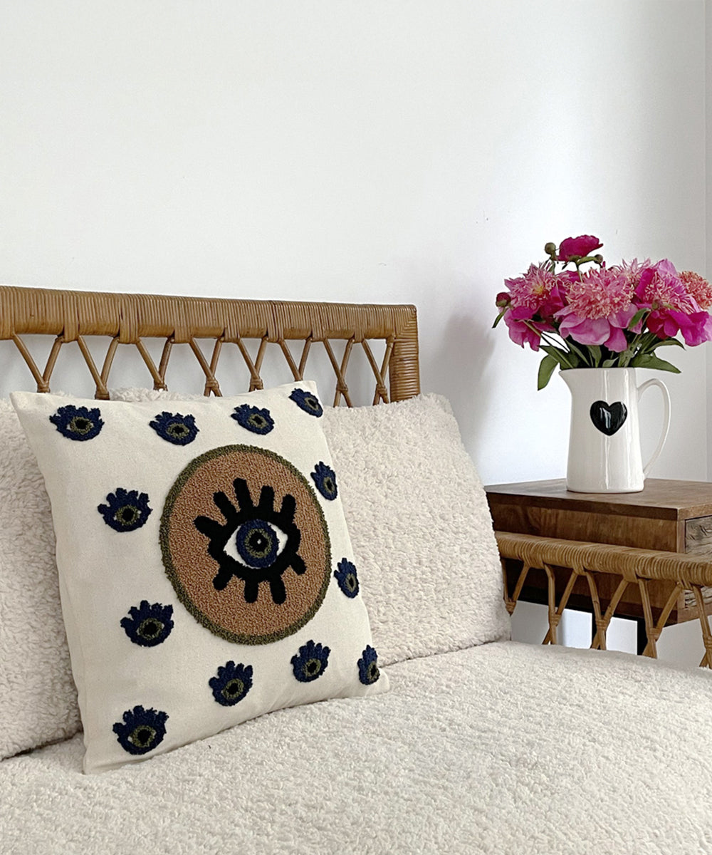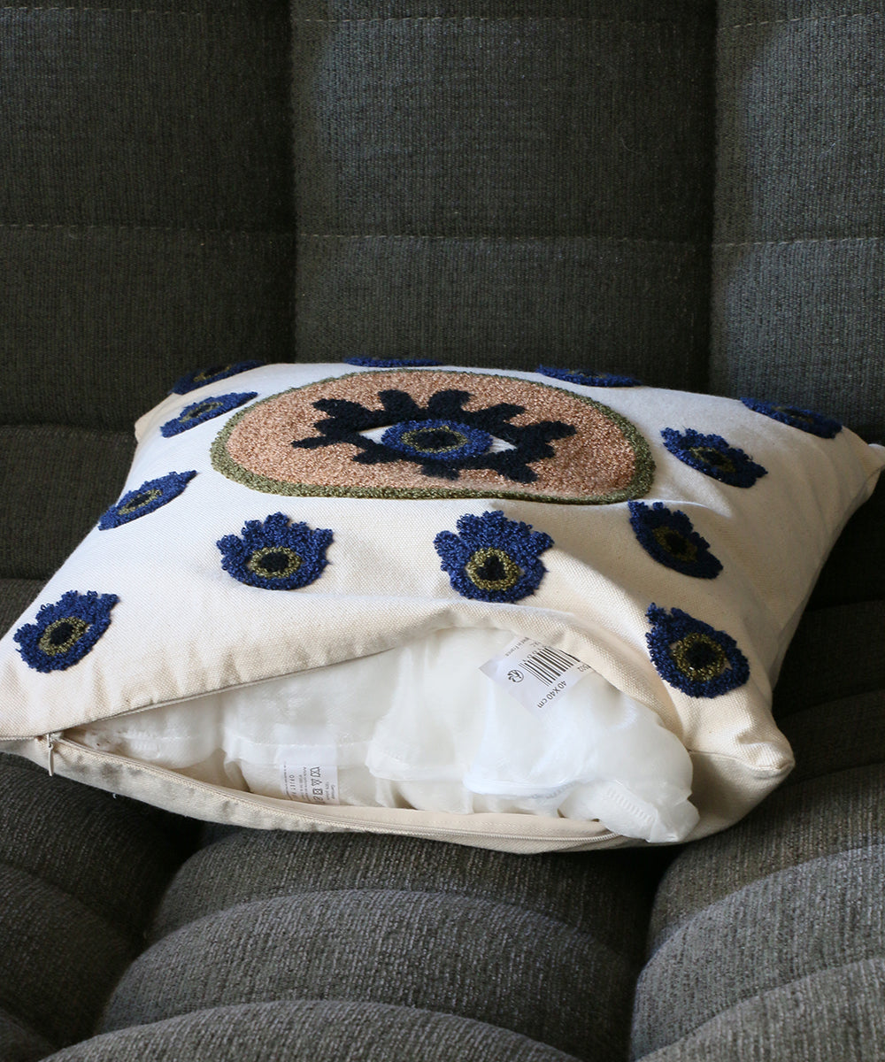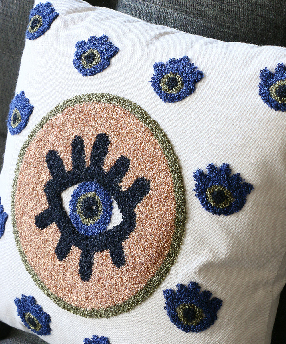 OPJET PARIS 刺繍クッションカバー・ナチュラルコットン・EYE・中身付き