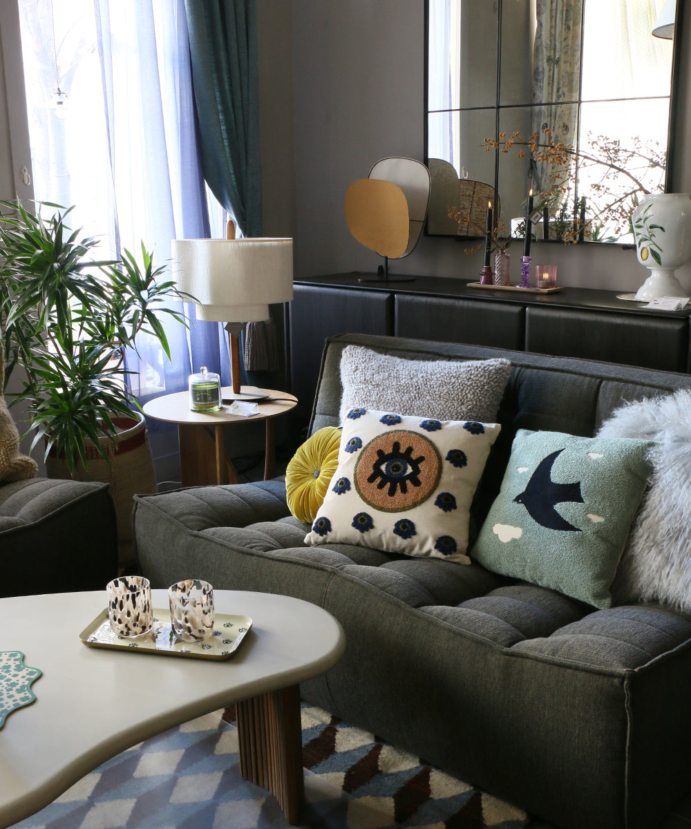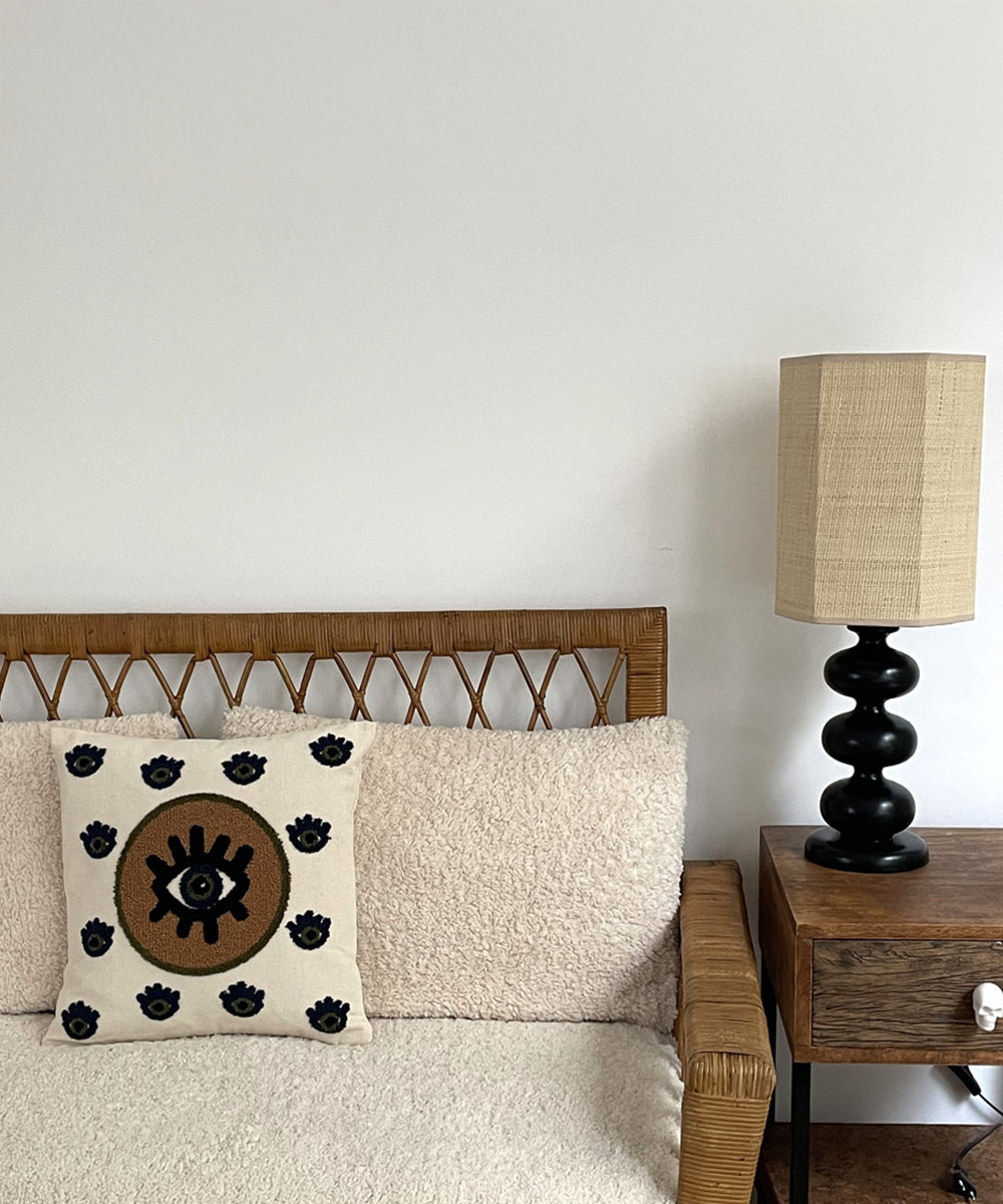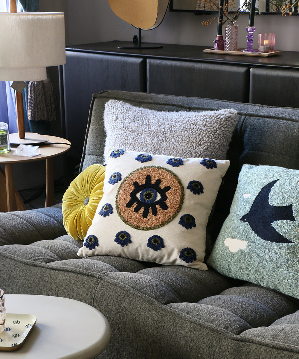 OPJET PARIS 刺繍クッションカバー・ナチュラルコットン・EYE・中身付き