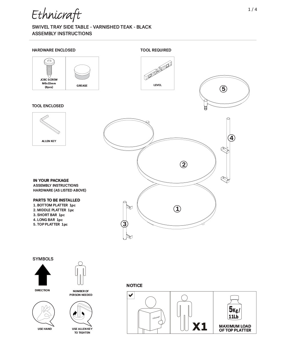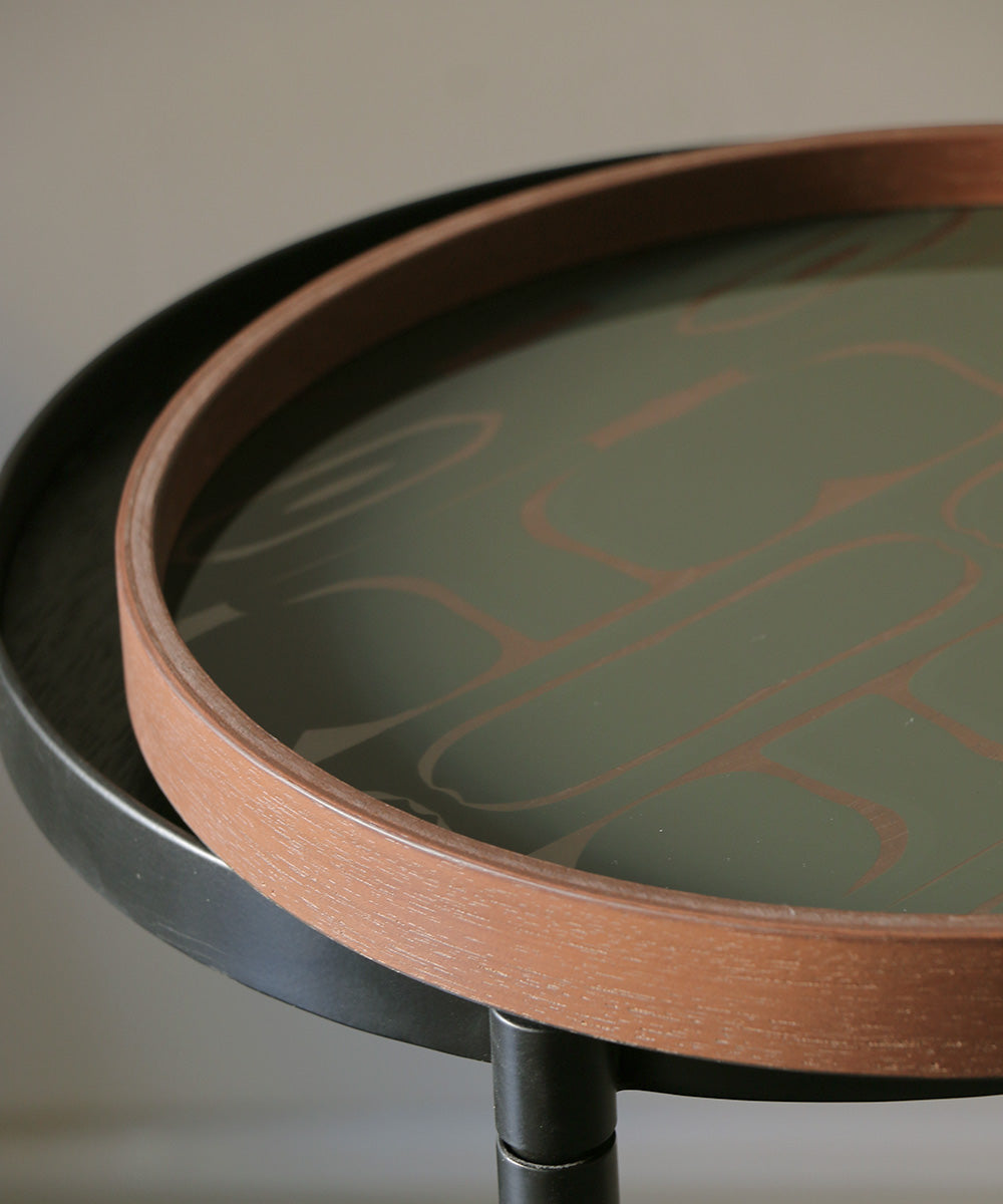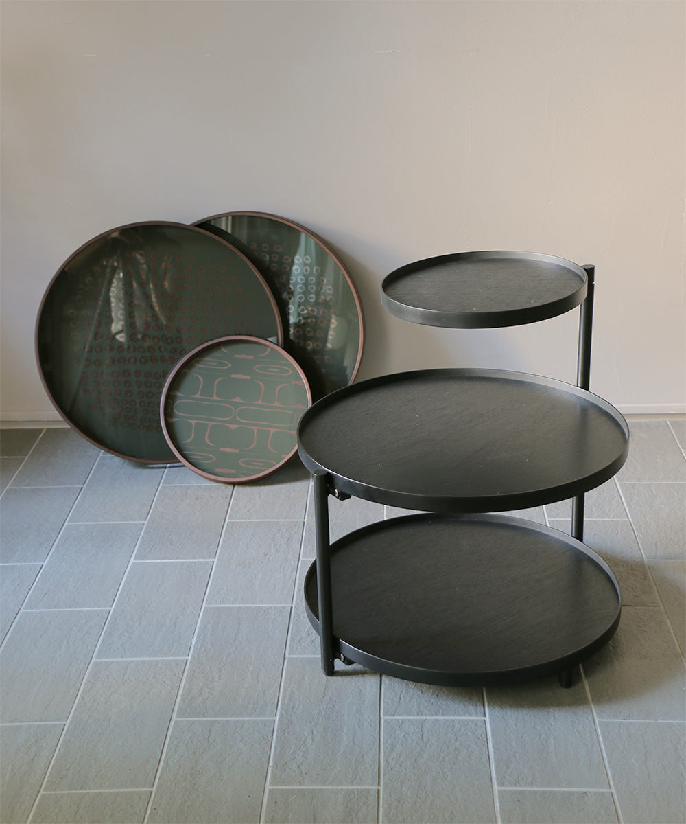 Ethnicraft スワイヴェル・トレイサイドテーブル+トレイ3枚セット
