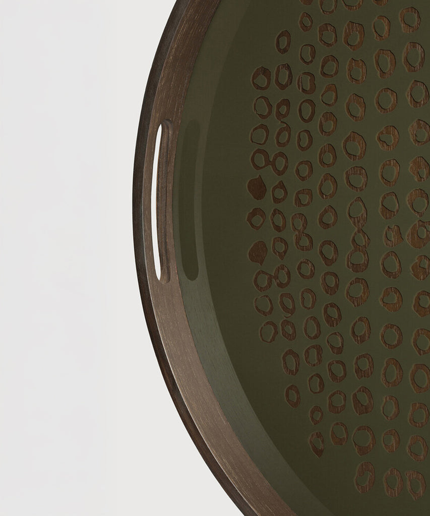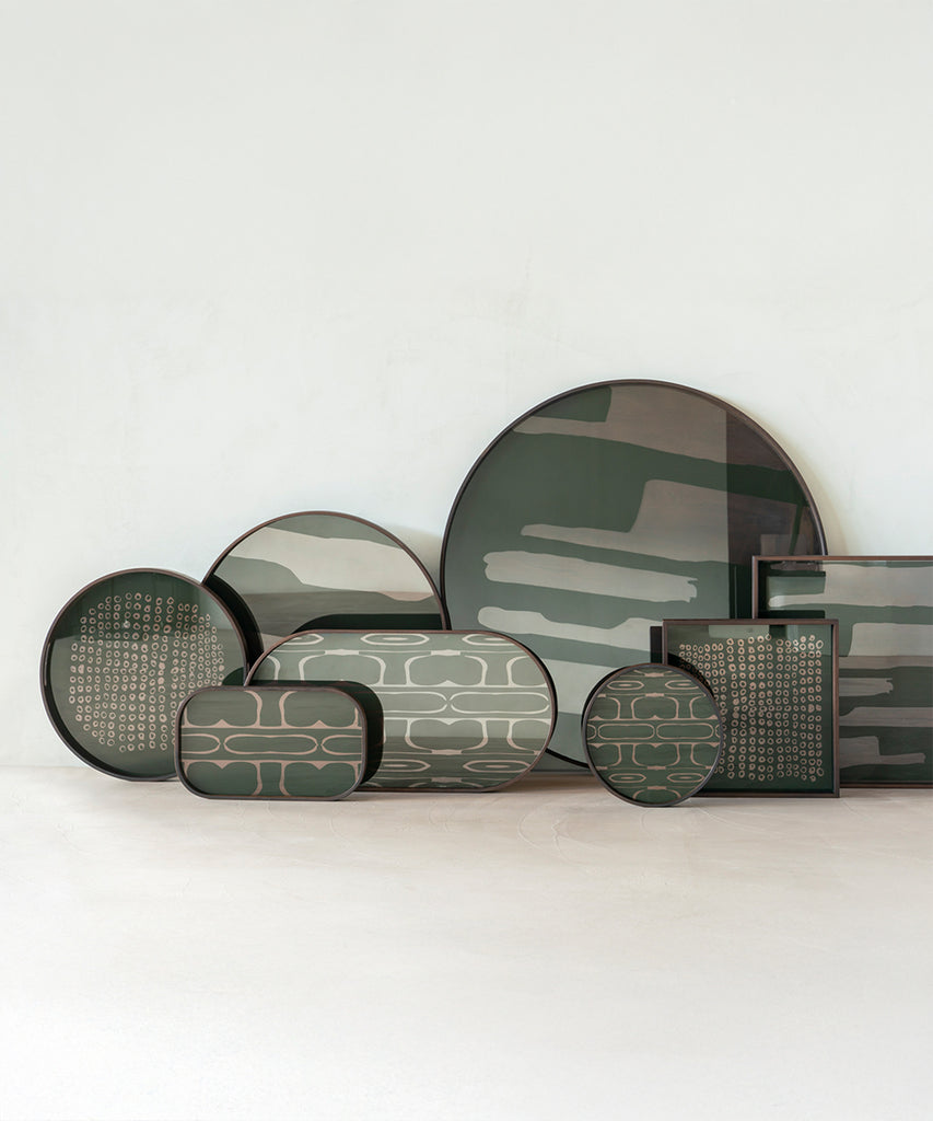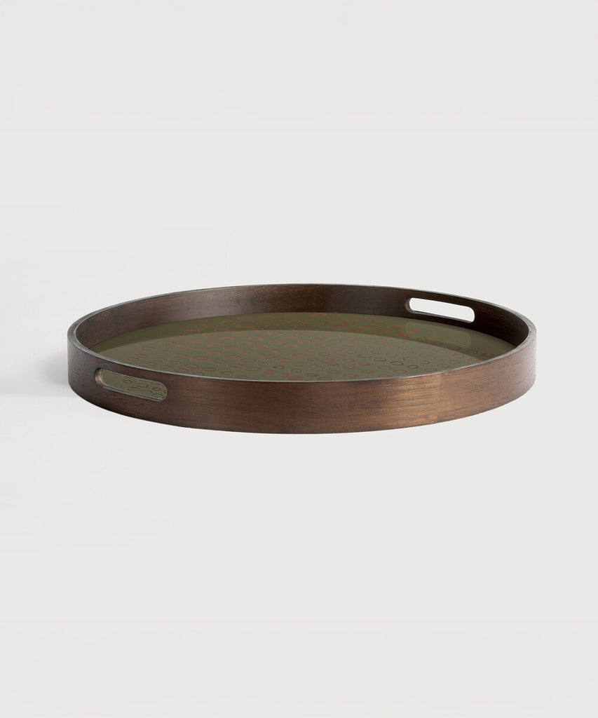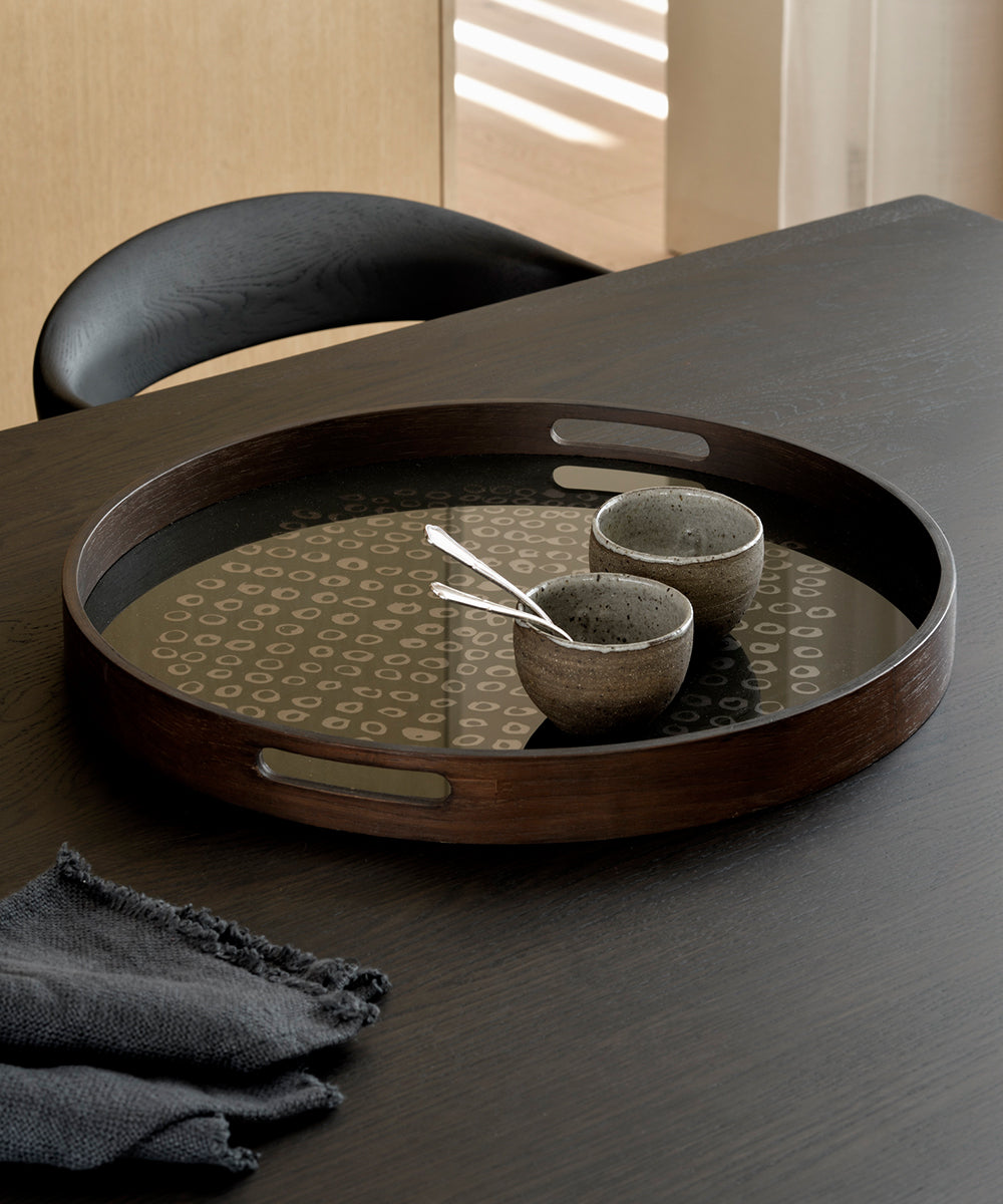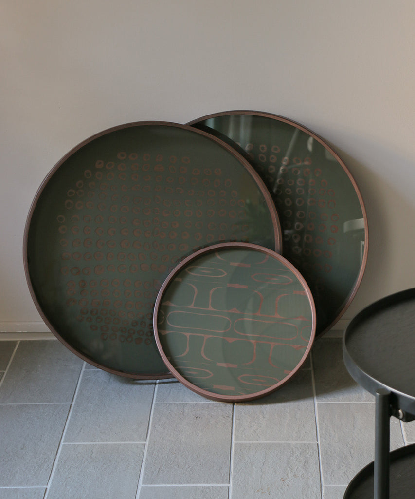 - ※こちらのトレイの天板はガラスですが、サイドの木部分とのジョイント部分から水分がしみこむ場合があります。こぼされましたらすぐにふき取ってください。