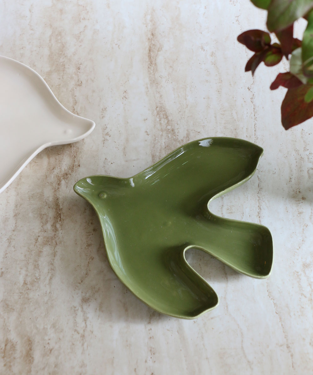 OPJET PARIS 鳥のプレート・陶器・カーキ
