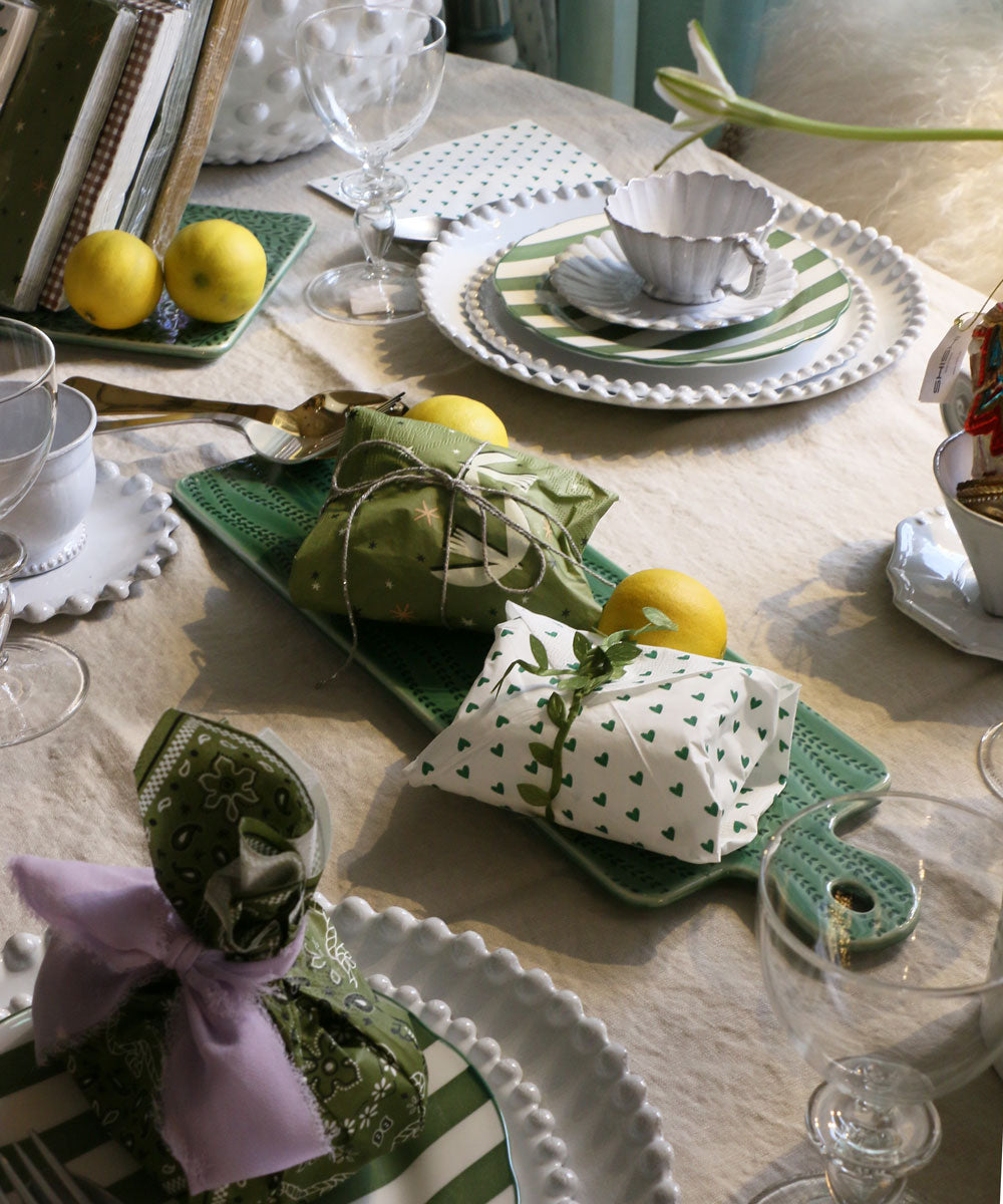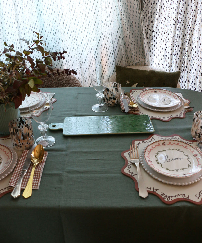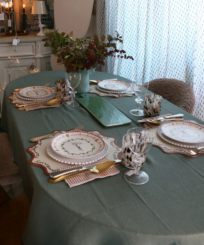 青みを帯びたグリーンは、テーブルにそっと奥行きを与えます。