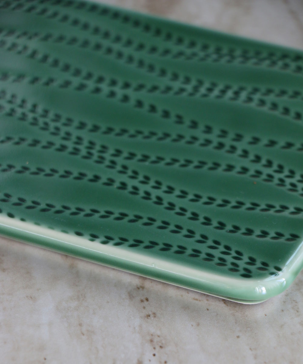 OPJET PARIS 陶磁器ボードL・グリーンリーフ柄