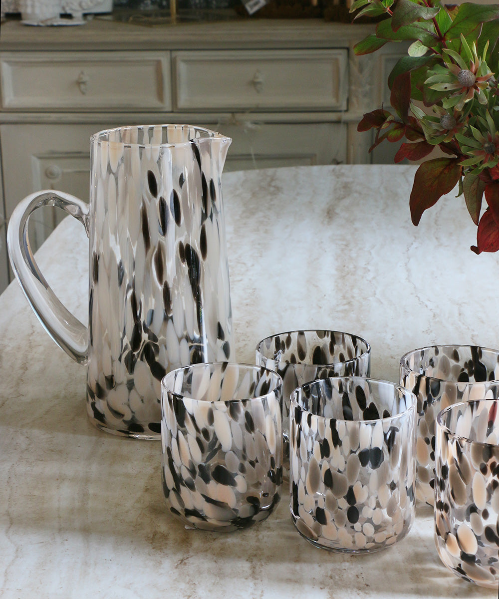 OPJET PARIS ガラスピッチャー・マーブルホワイト&ベージュ