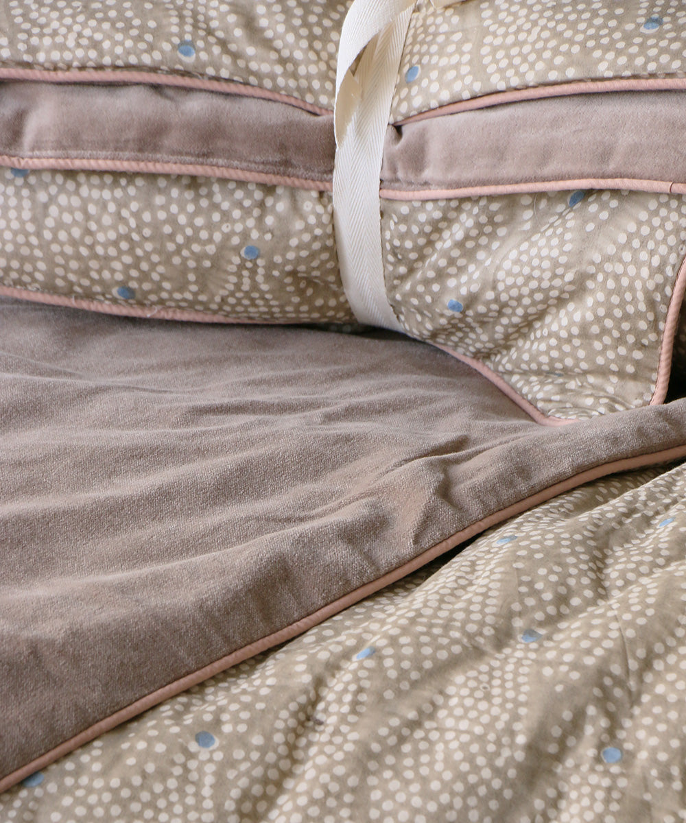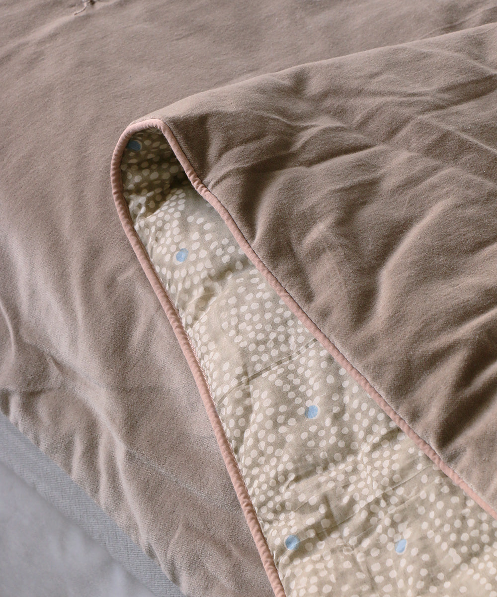 中綿入りのキルティング仕立てで、手で丁寧に縫い留めています。