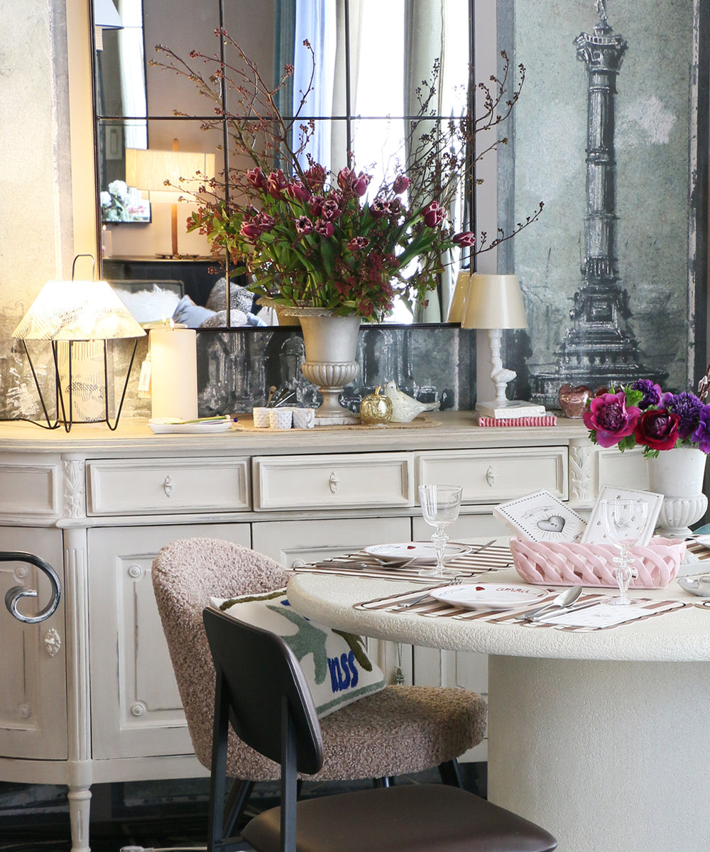 ピンクなど甘めカラーと組み合わせても、大人っぽくまとまります。