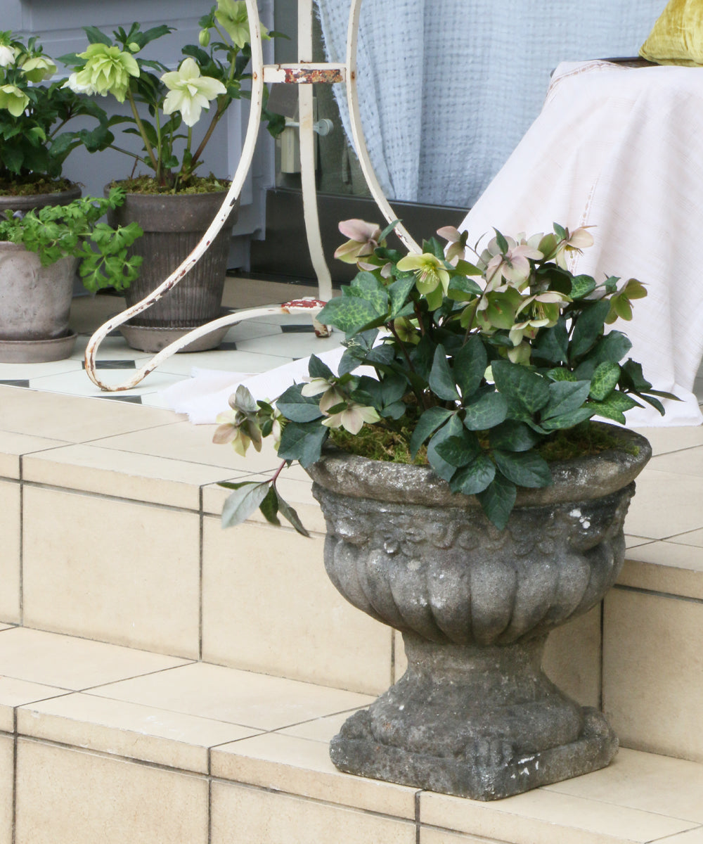 天然石を削り出した重厚な質感が、植物を引き立ててくれます。