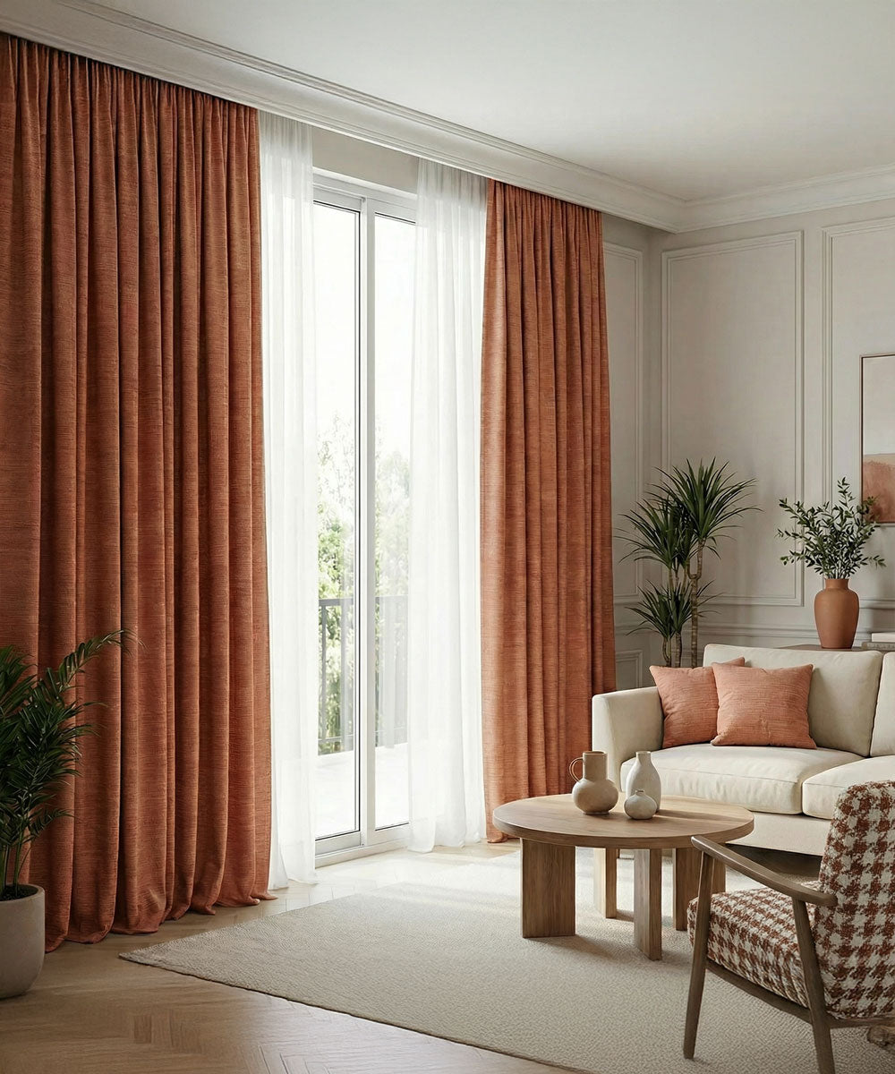 《デザイン》トリム付き(縦方向または裾)・遮光裏地付き・遮光でない裏地付きなど