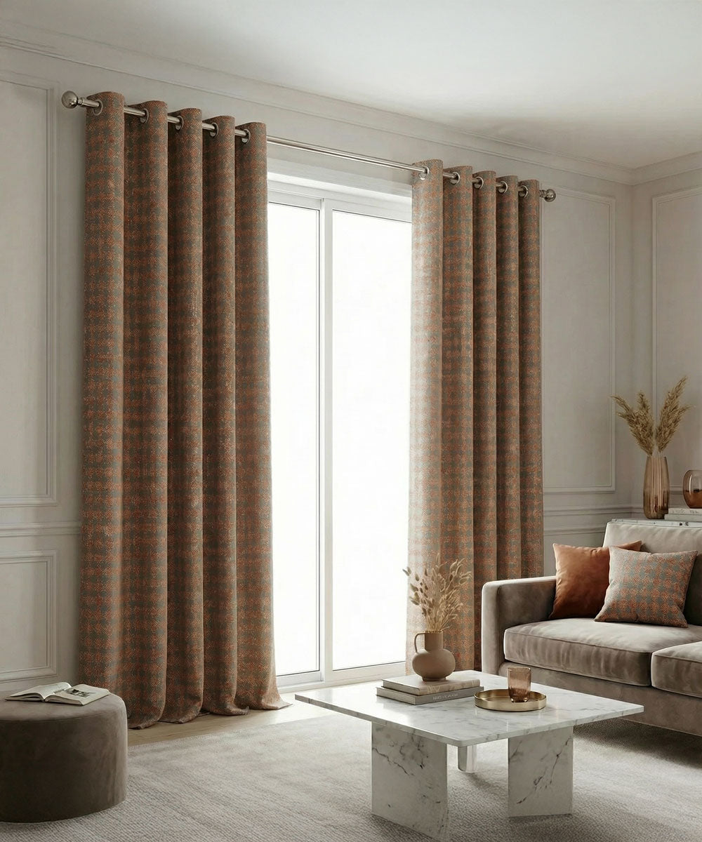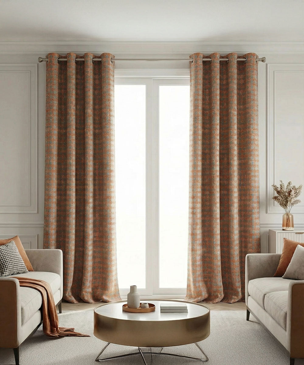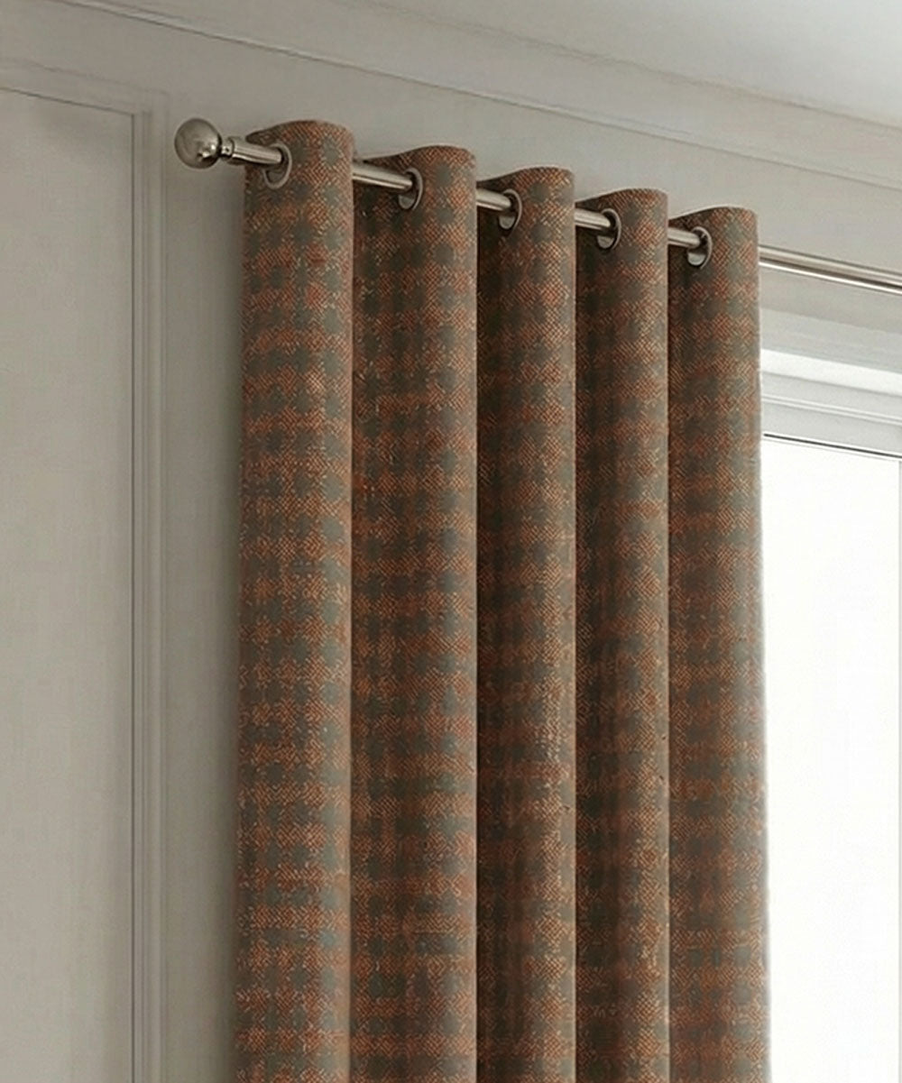 ハトメにはシルバーを使用し、生地のモダンな表情を引き立てます。