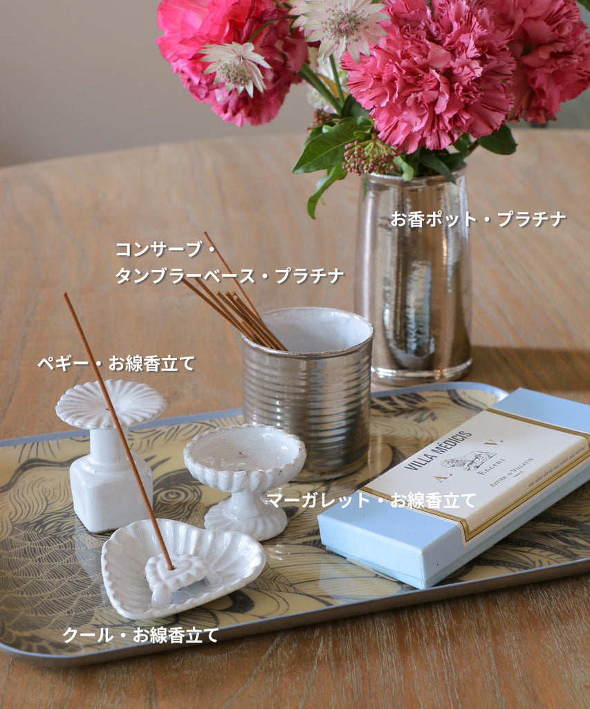 小さなお線香立てを数個並べてオブジェのように飾るのも素敵。