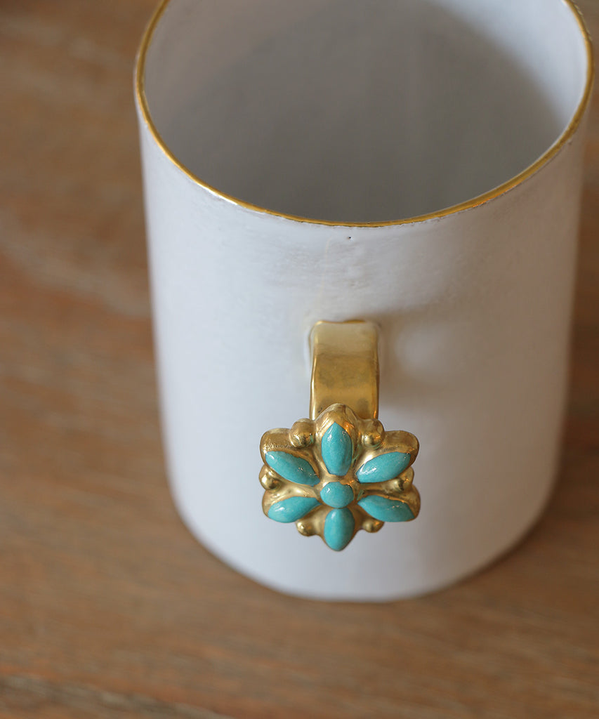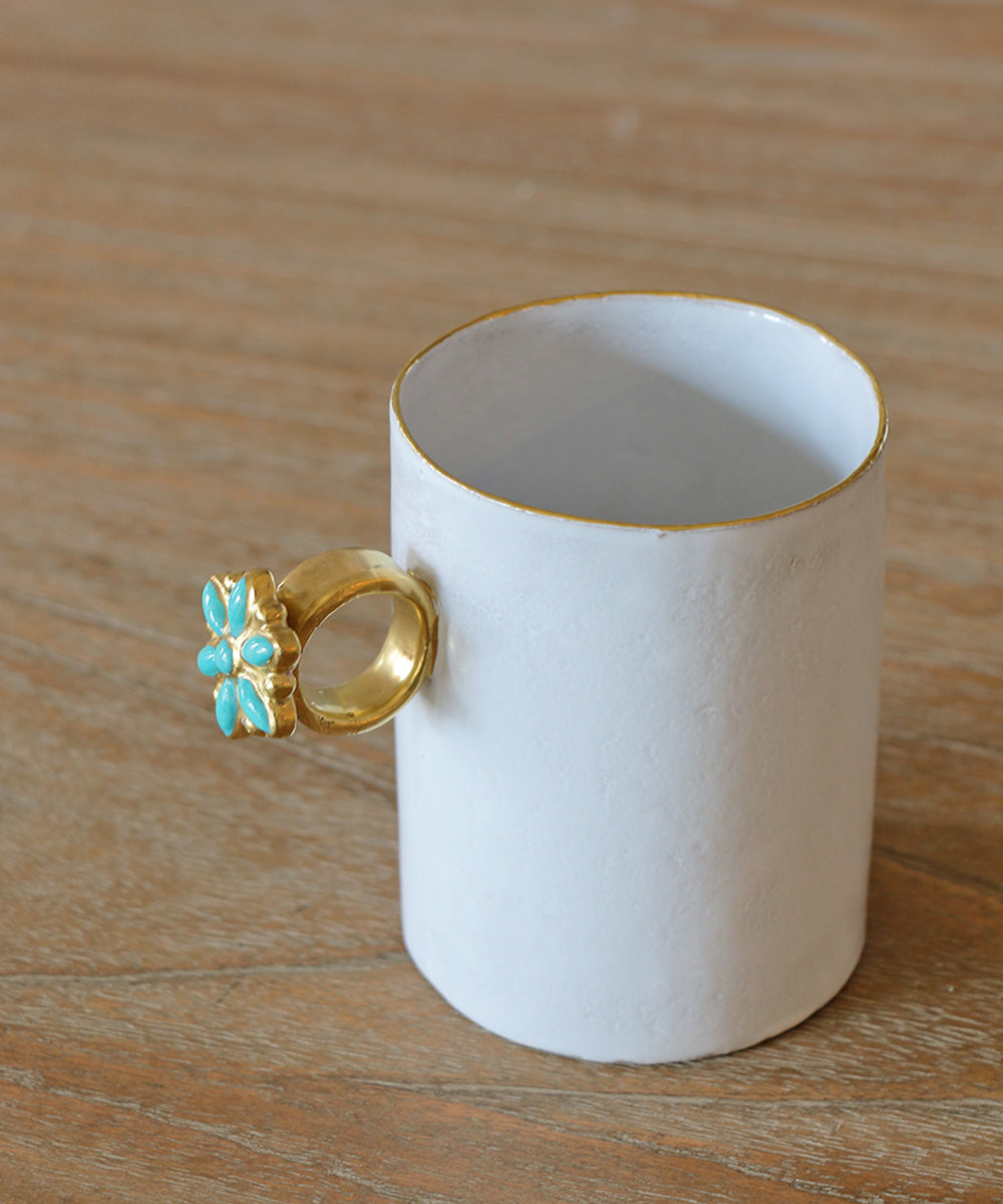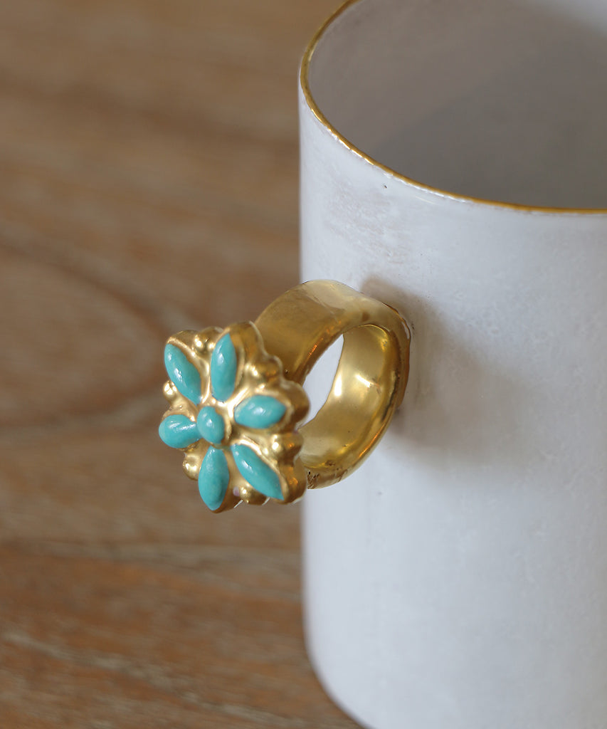 こっくりとたっぷりとした指輪に指を通して楽しめば、中世のおとぎ話の世界のようなティータイムに。ヴェースやインテリアの飾りにもインパクトのある存在感です。