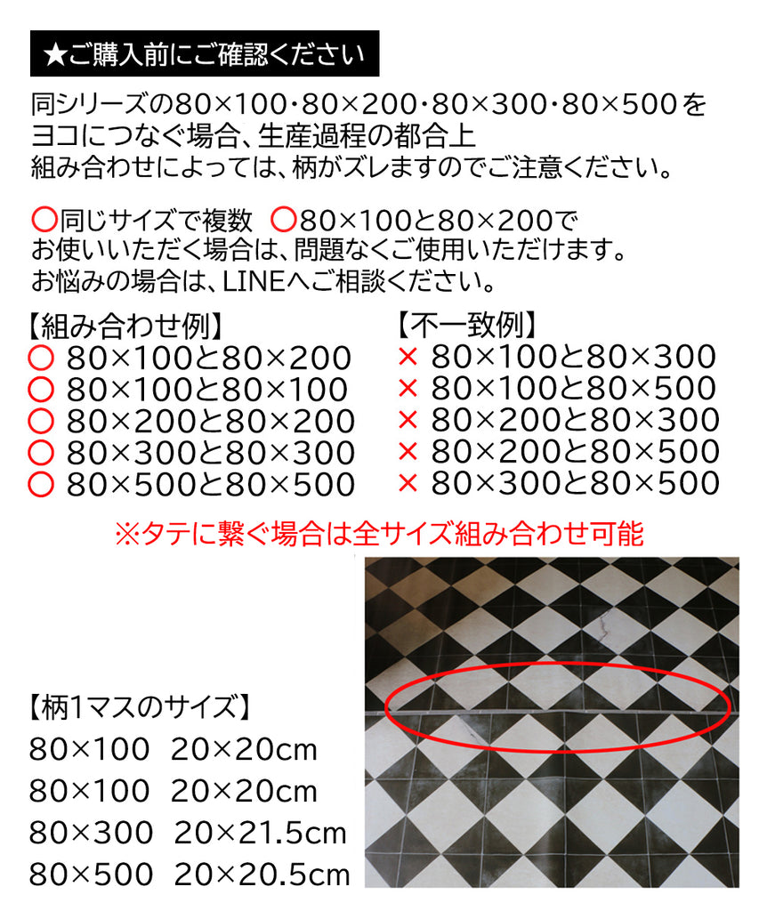 ☆同シリーズの80×100・80×200・80×500と一緒にご使用の場合生産過程の都合上、柄がズレますのでご注意ください。