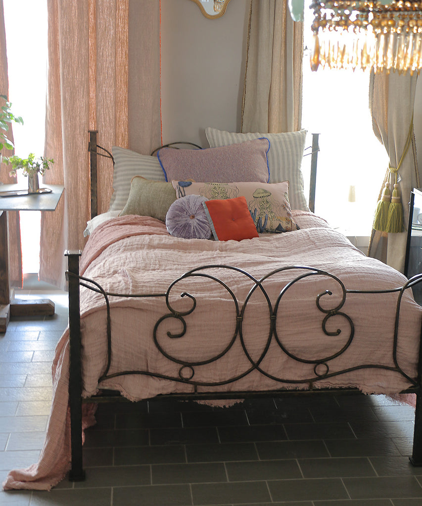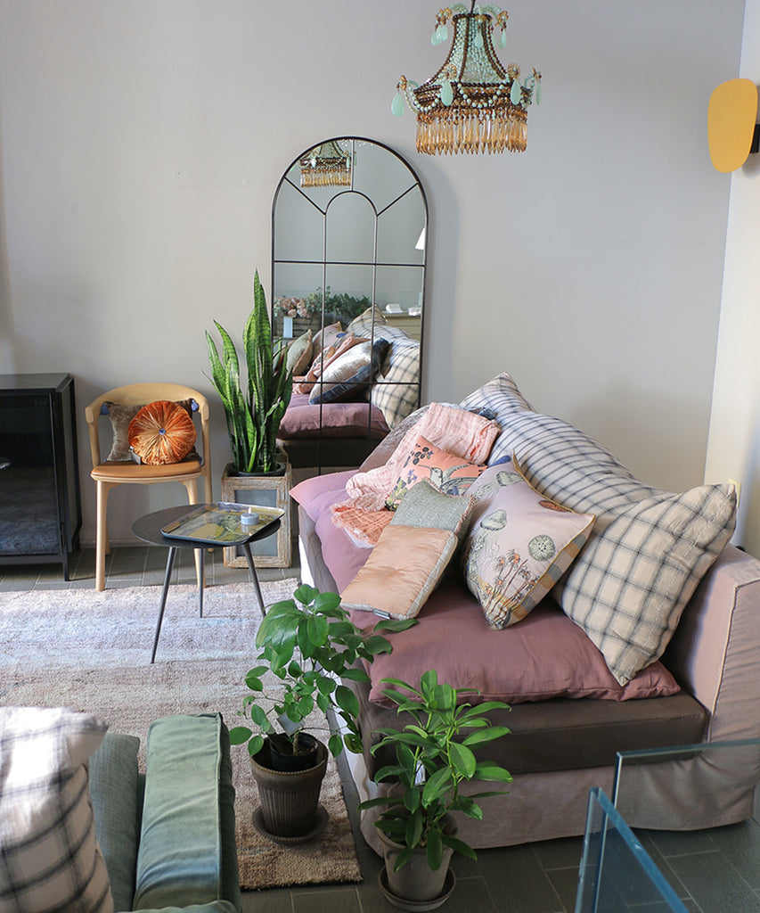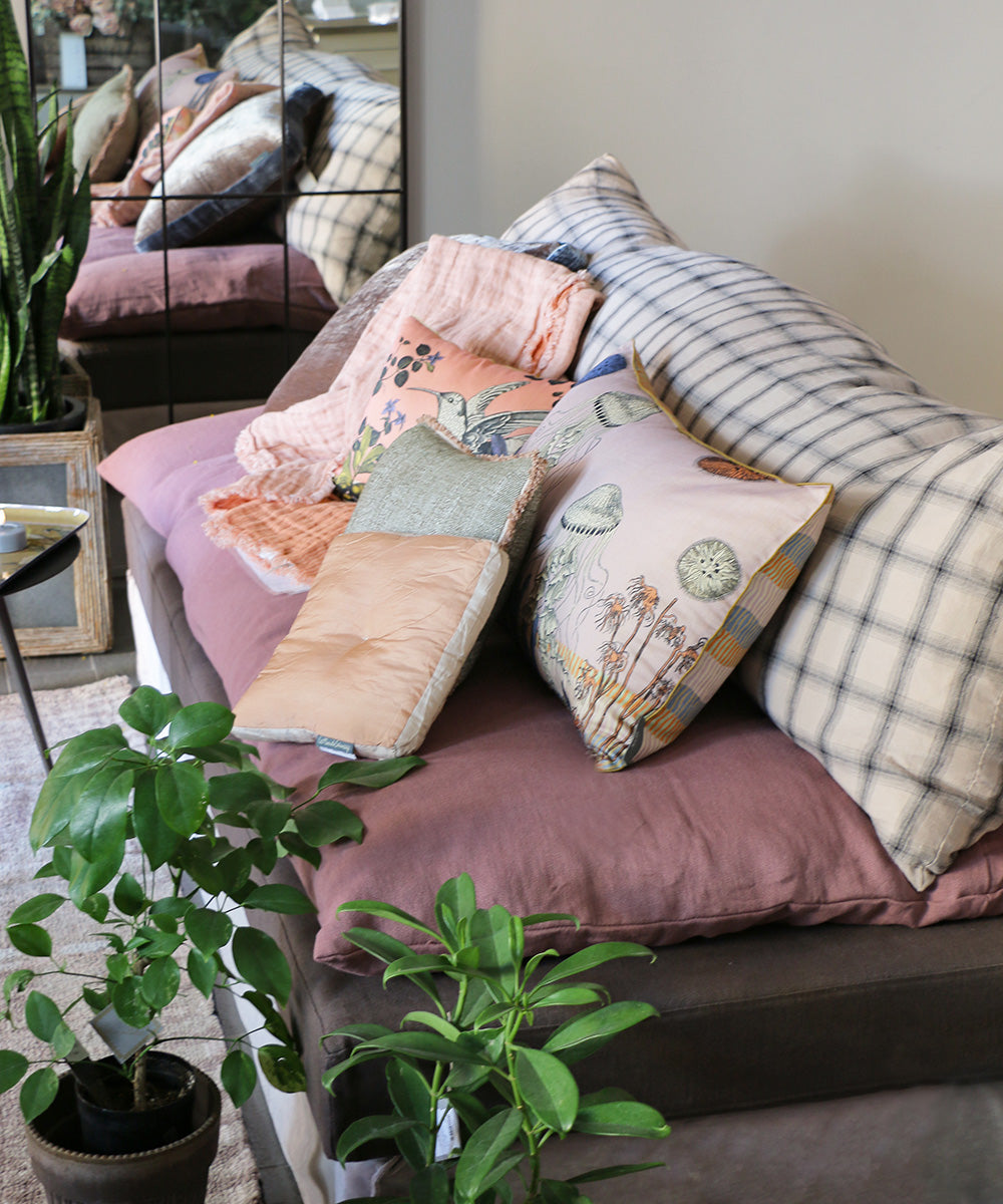 シルクベロアなどの異素材のクッションと組み合せても◎
