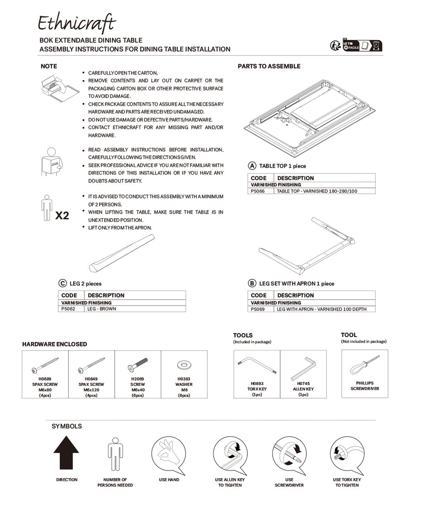 Ethnicraft エクステンションテーブル・オークブラウン・ボーク 180-280×100cm