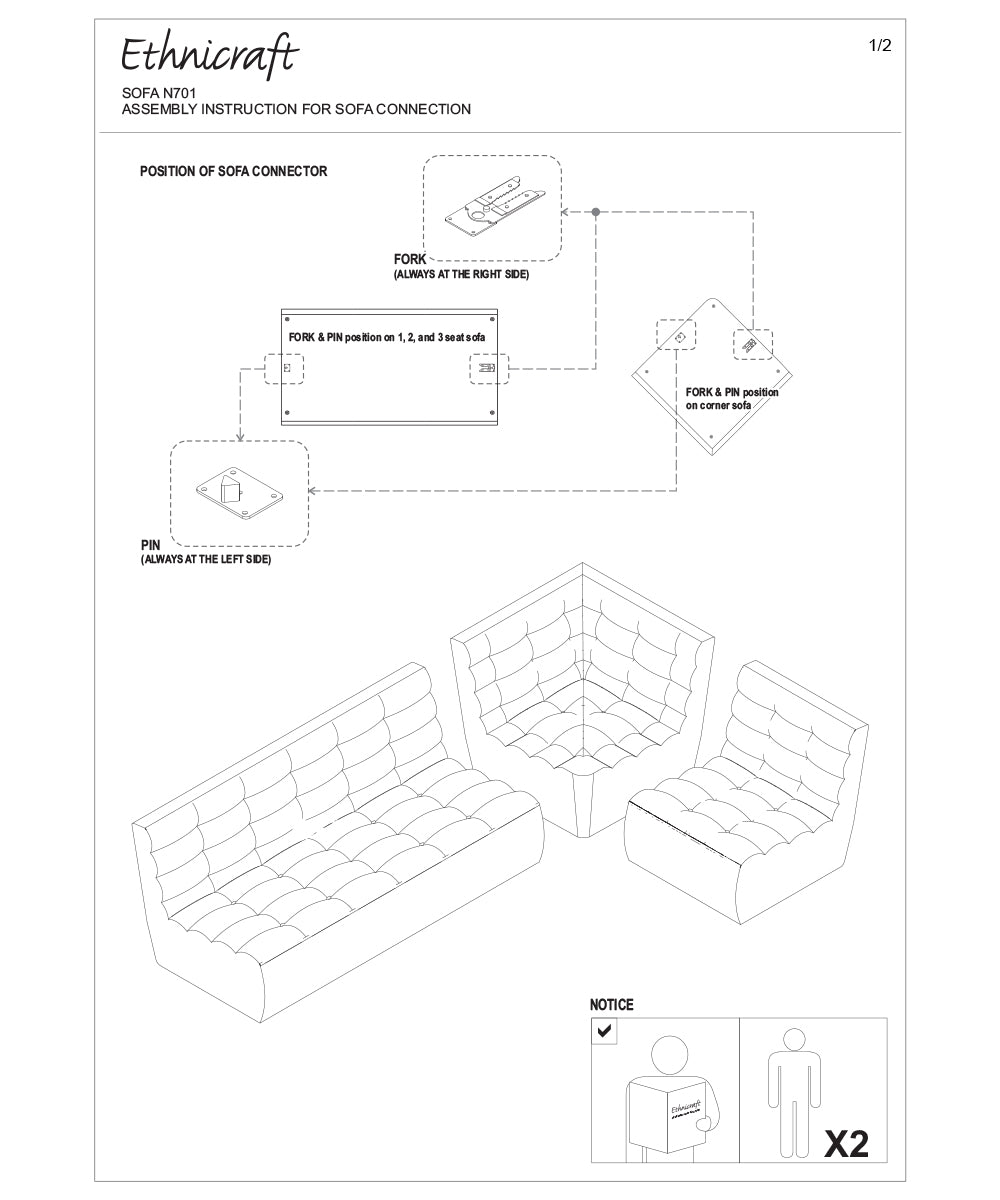 ソファの底面には金具が付いており、連結して頂けます。