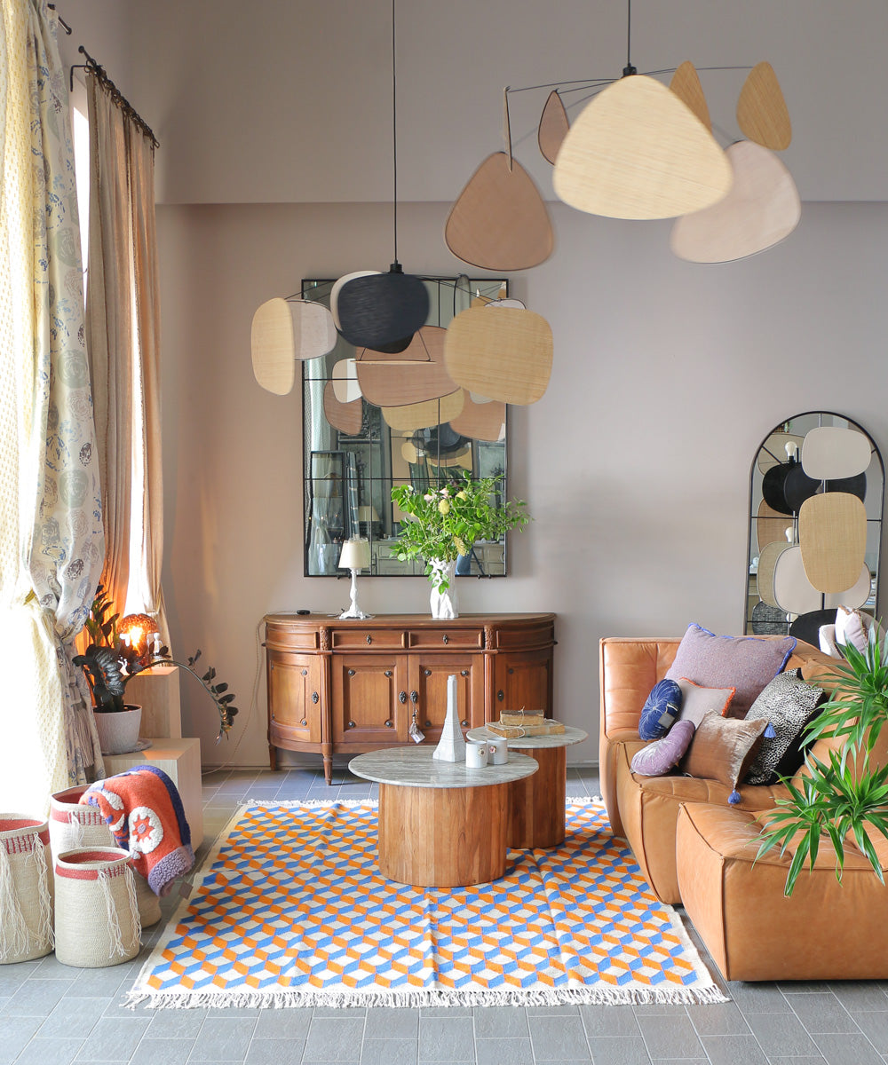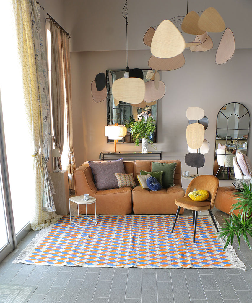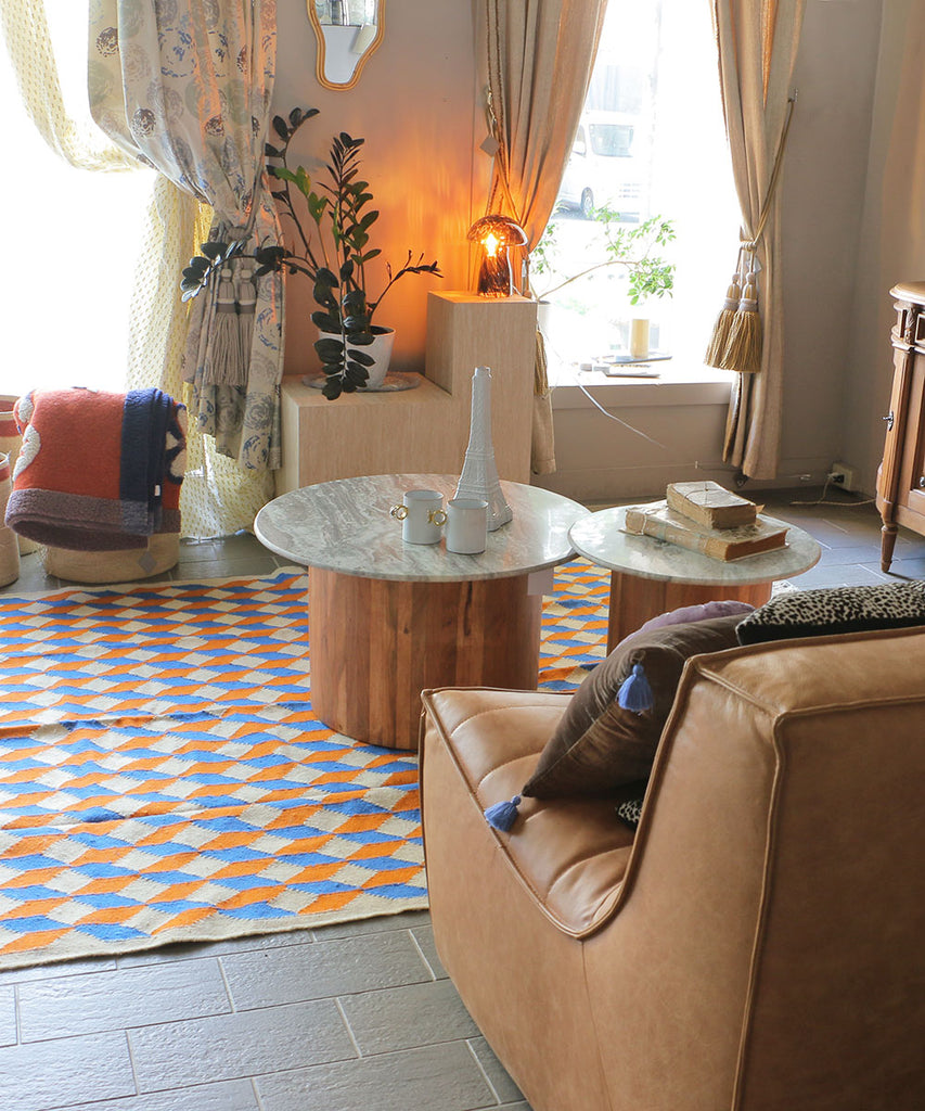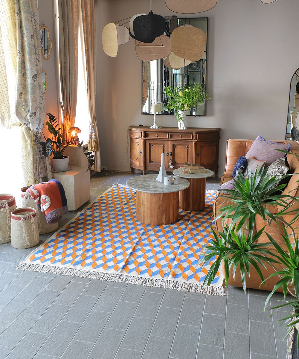 キューブ柄が目を惹くPO!PARISのキリムラグ。