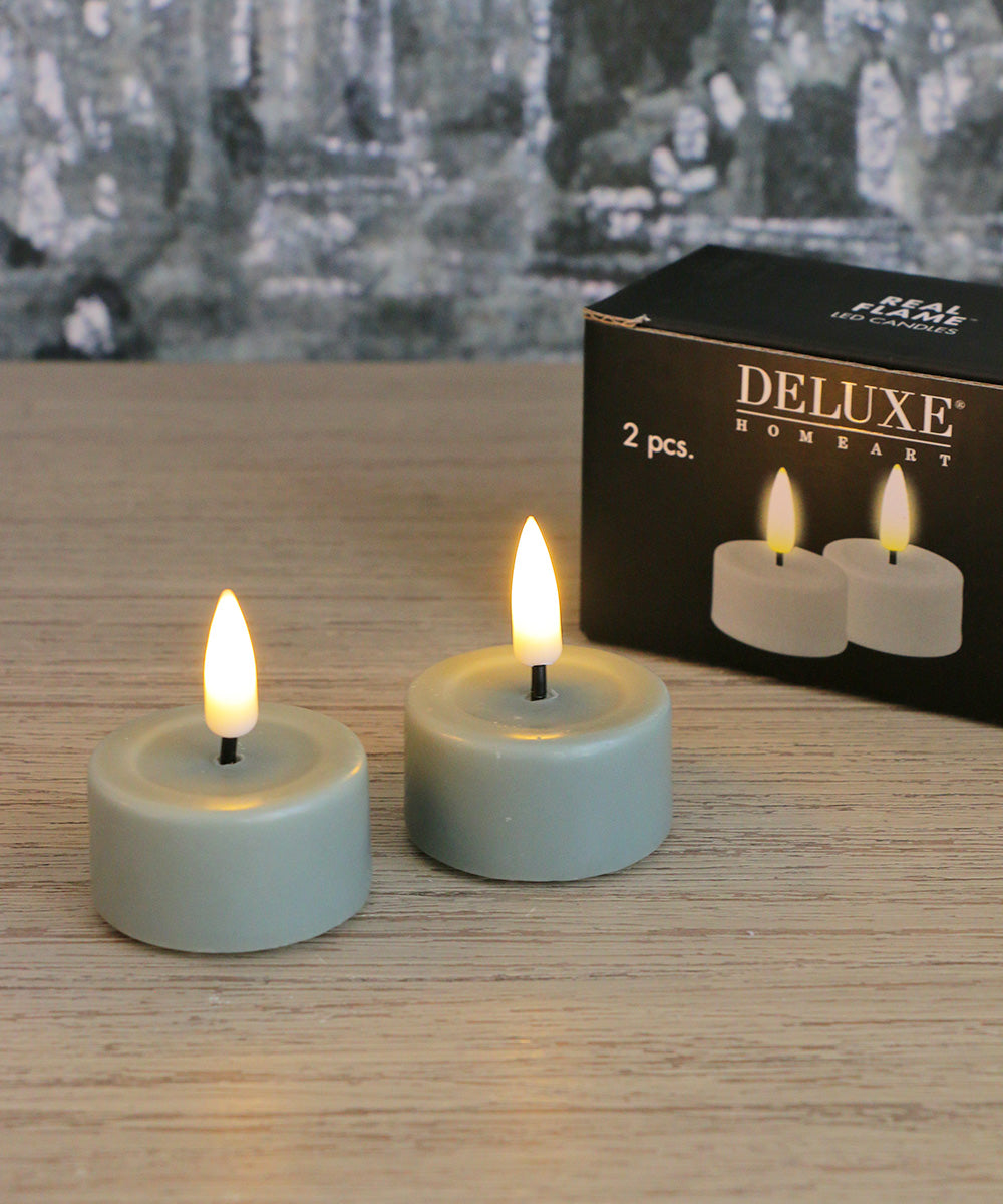 Deluxe LEDティーライトキャンドル・セージグリーンM・2個セット