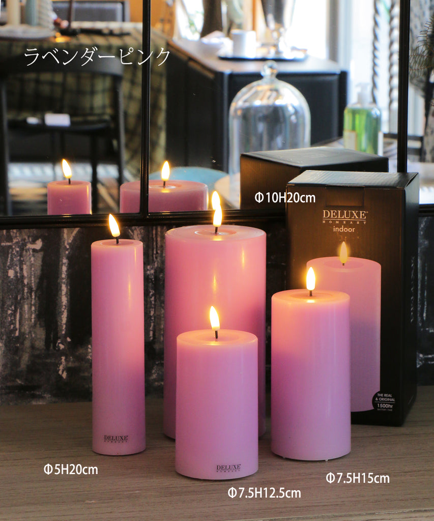 Deluxe LEDキャンドル・ラベンダーピンク・Φ10H20cm