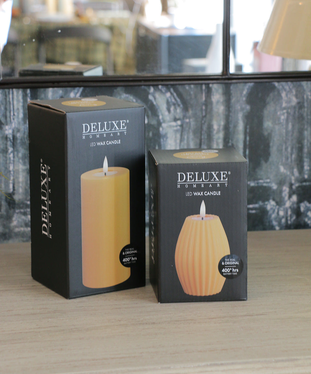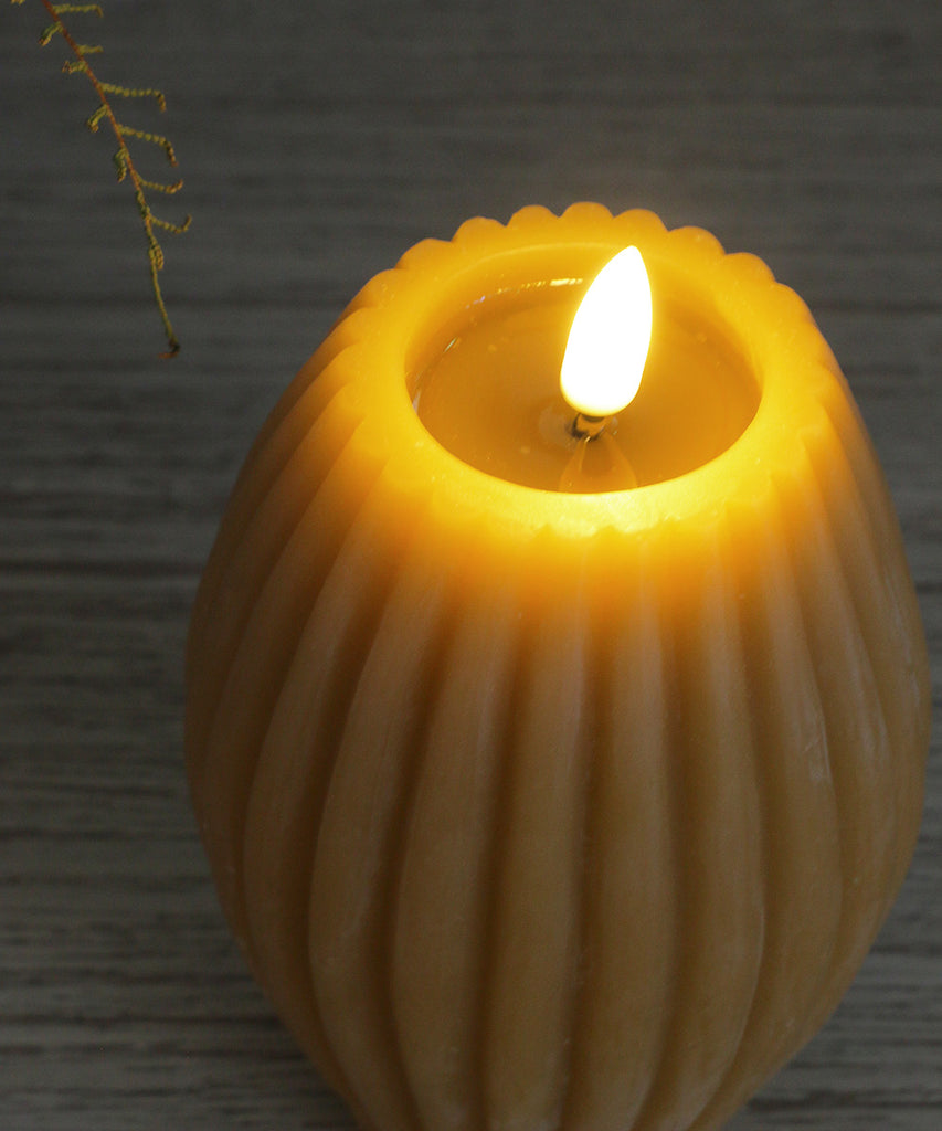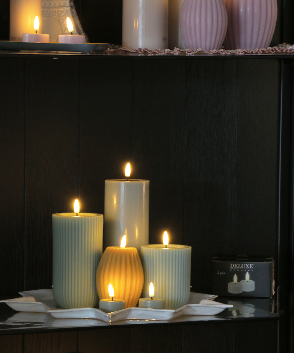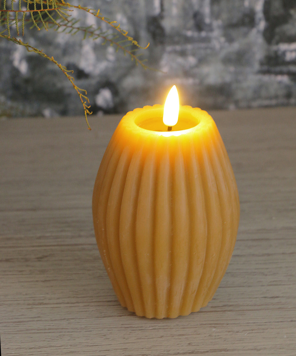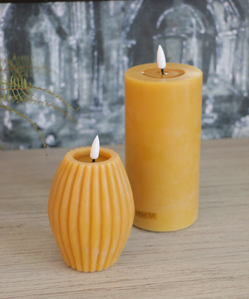 Deluxe LEDキャンドル・ストライプ・イエロー・Φ7.5H10cm