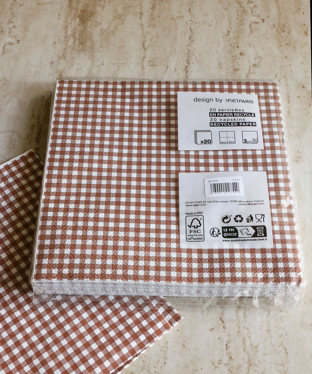 OPJET PARIS ペーパーナプキン 20枚入り・ブラウンギンガムチェック