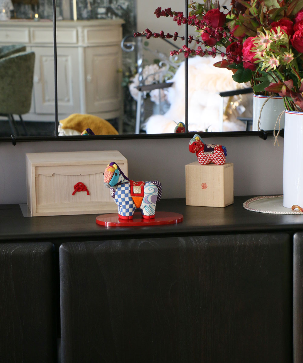鞍(背の馬具)やボディ、顔の一部には、桜柄を合わせています。