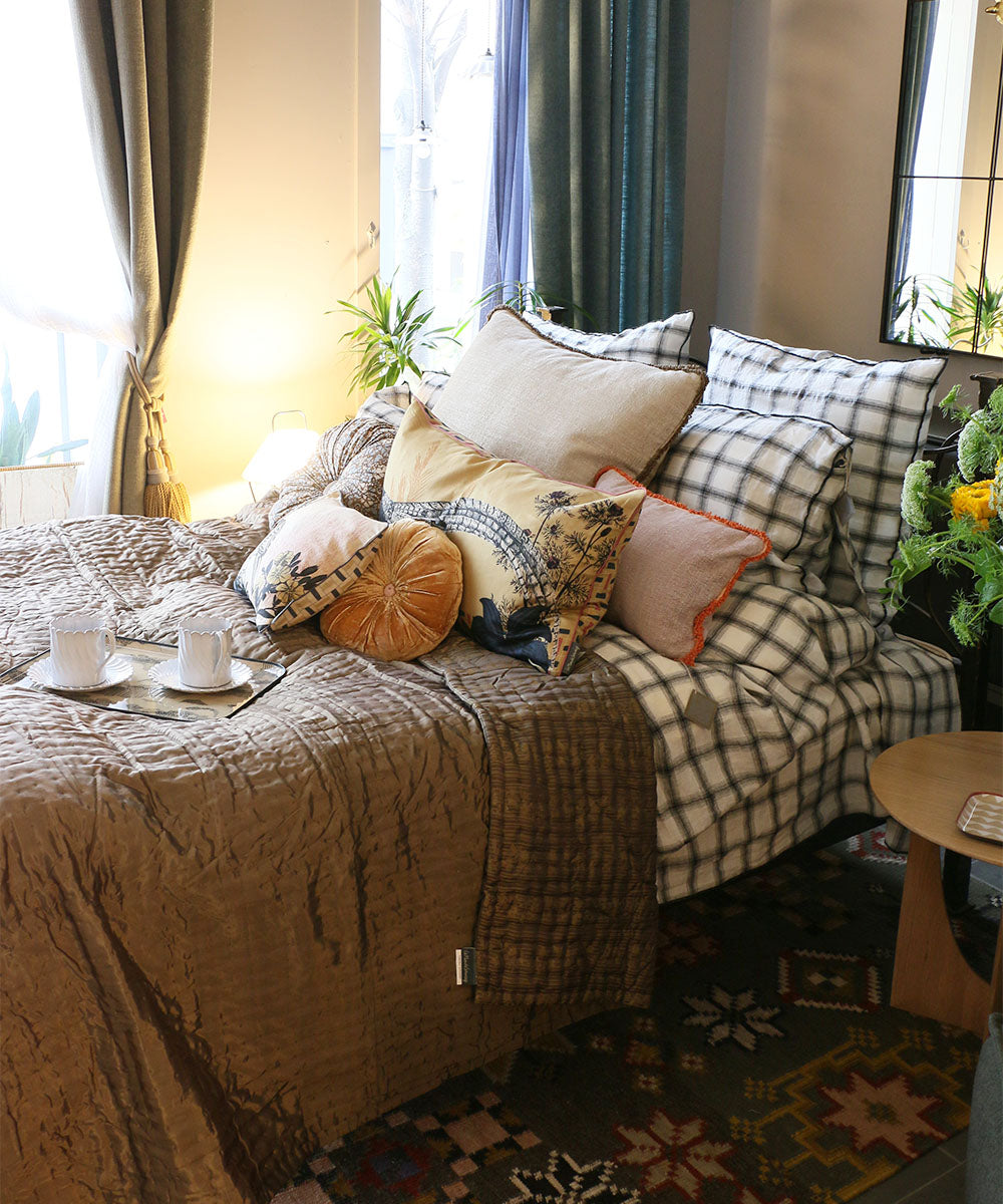シルクベロアなどの異素材のクッションと組み合せても◎
