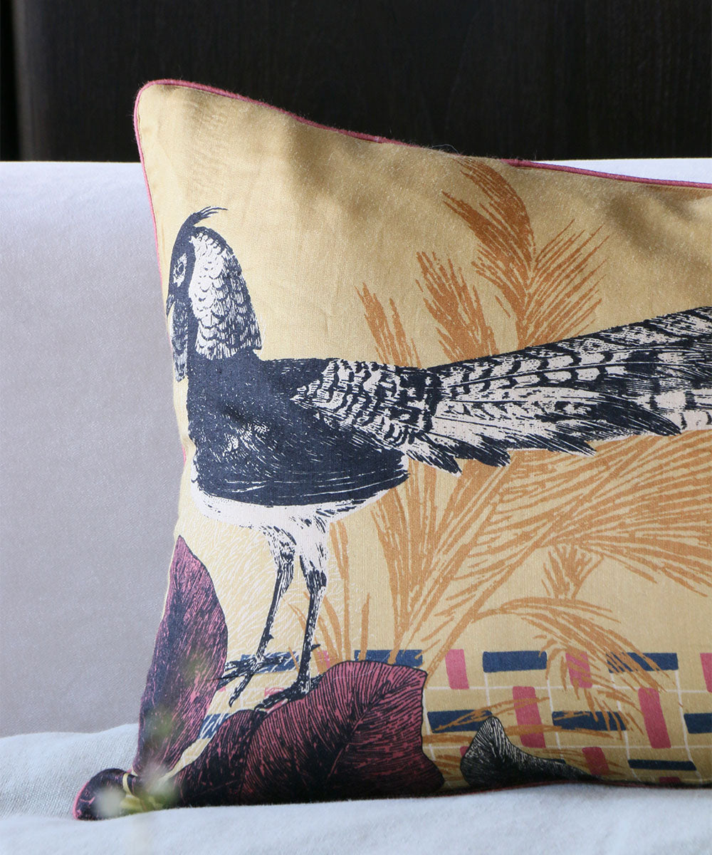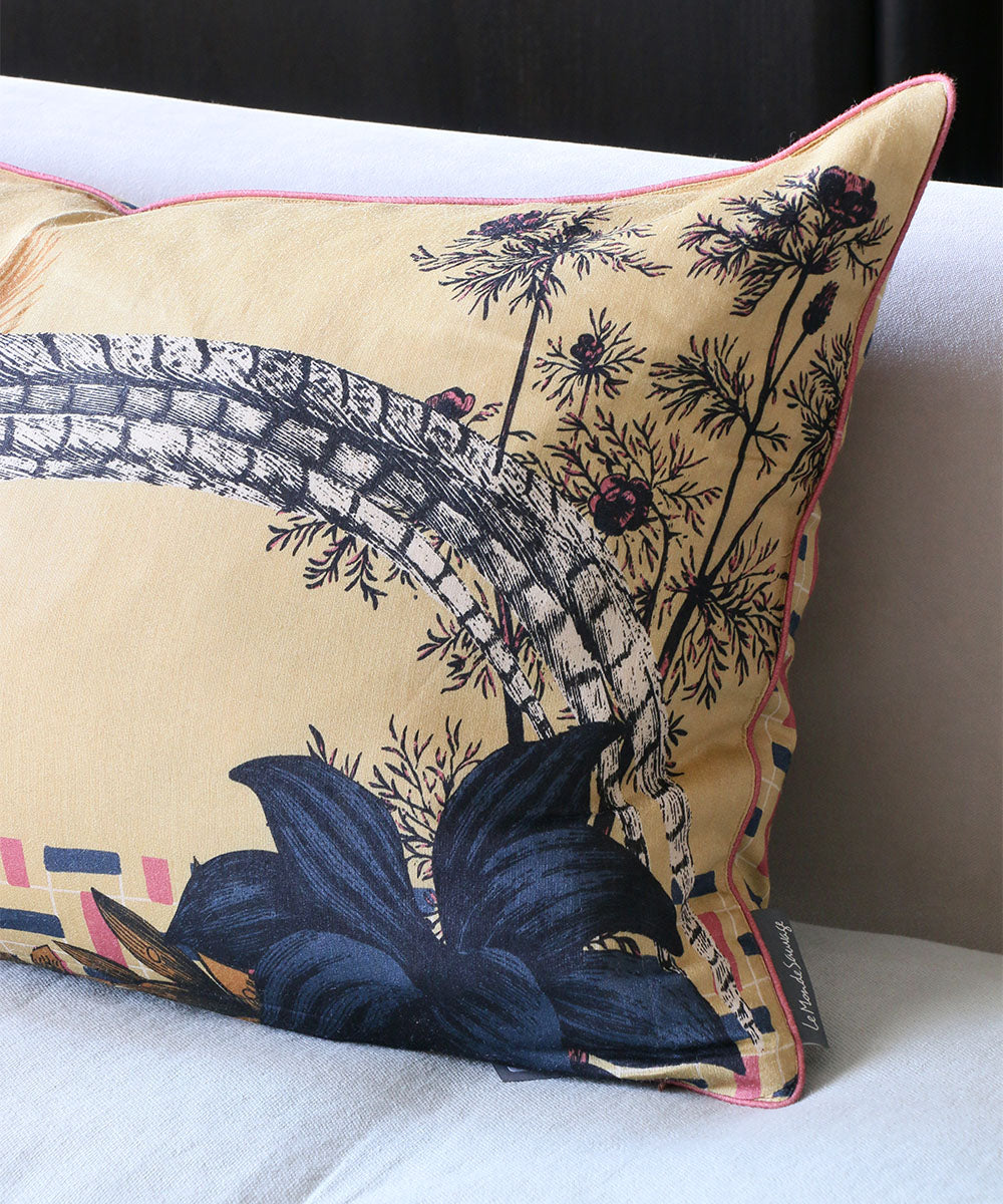 Beatrice LAVAL シルククッション・ホッコウ鳥・70×40