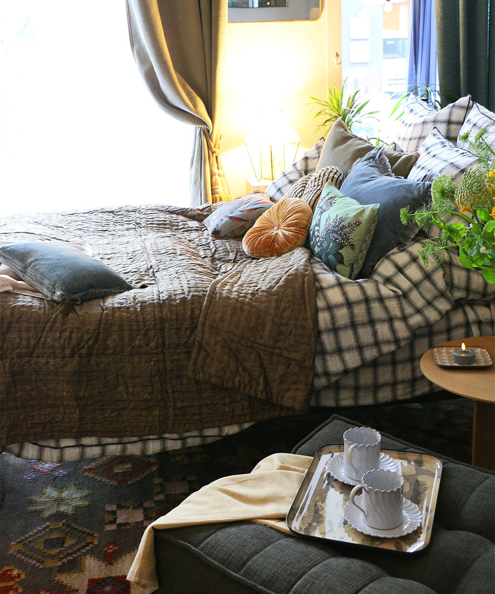 シルクベロアなどの異素材のクッションと組み合せても◎