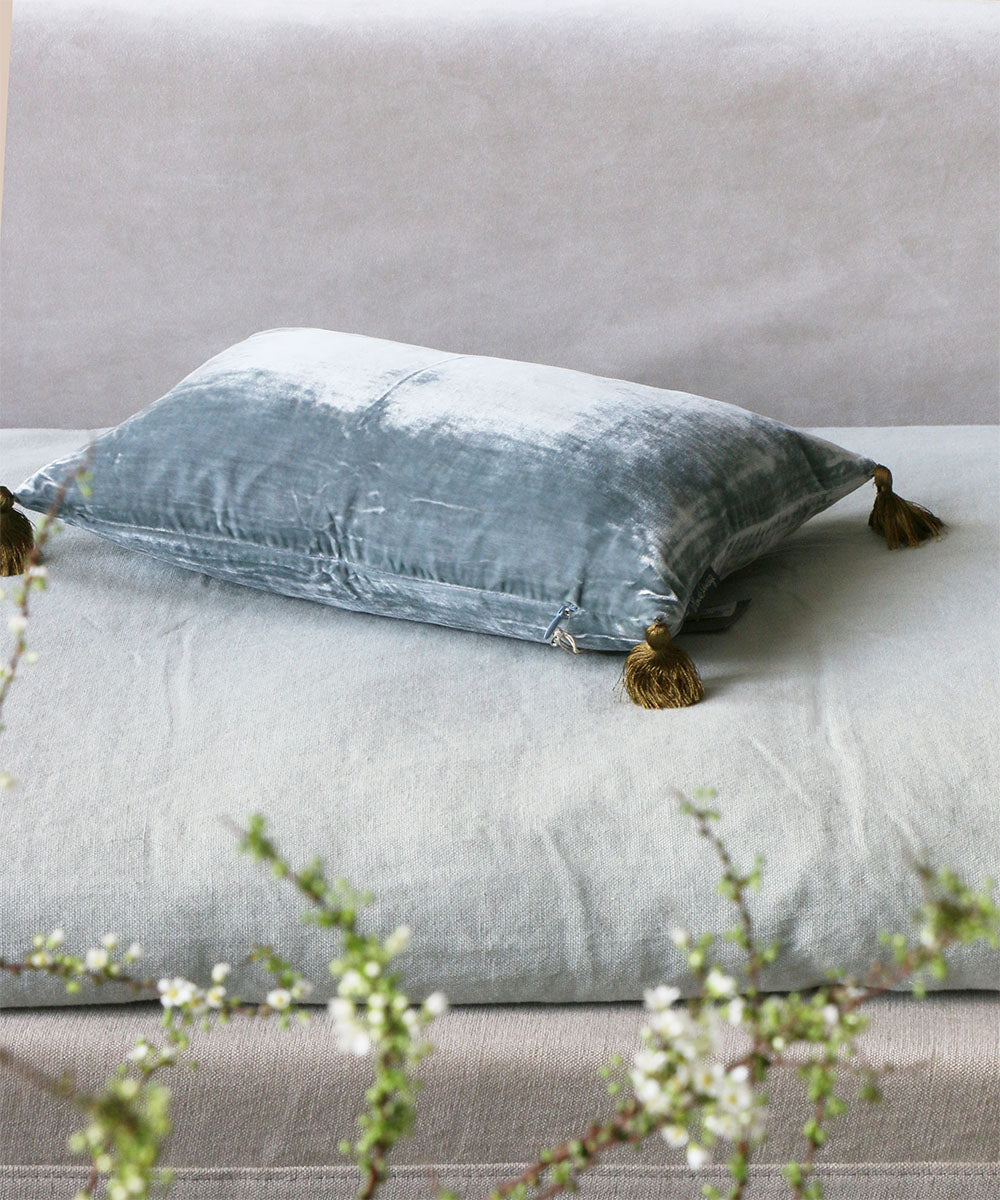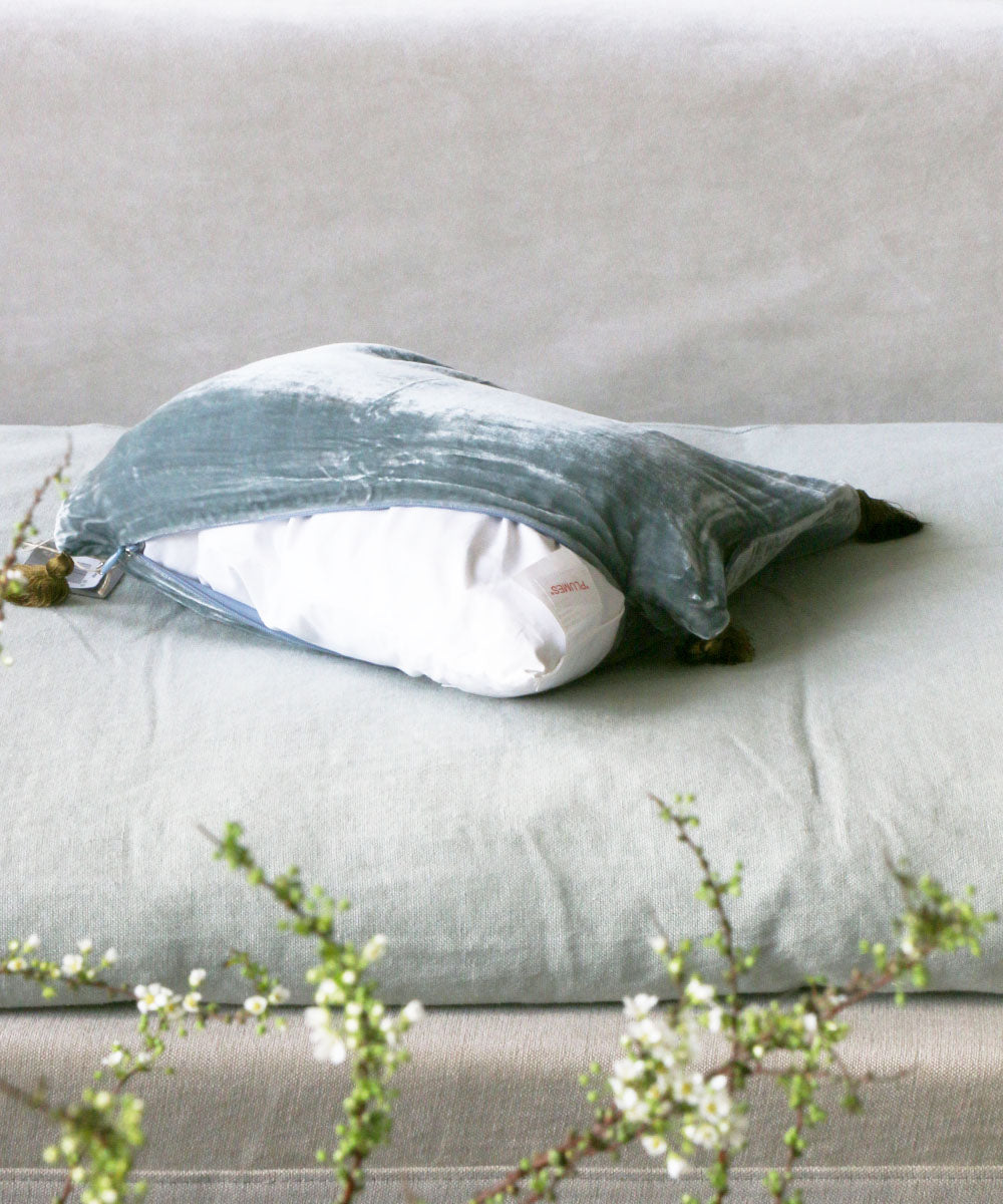 Beatrice LAVAL シルクベロアクッション・ポンポン・シフノスブルー