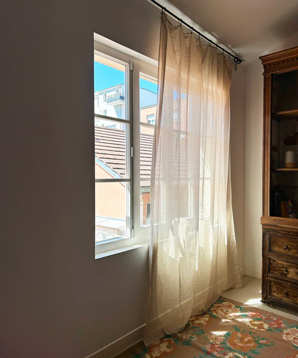 カーテンポールやレールに引っ掛けてカーテンとしてお楽しみ頂けます。