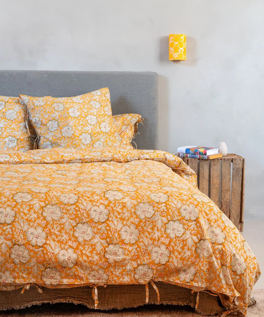 ブロックプリントならではの、水彩画のようなタッチが魅力。