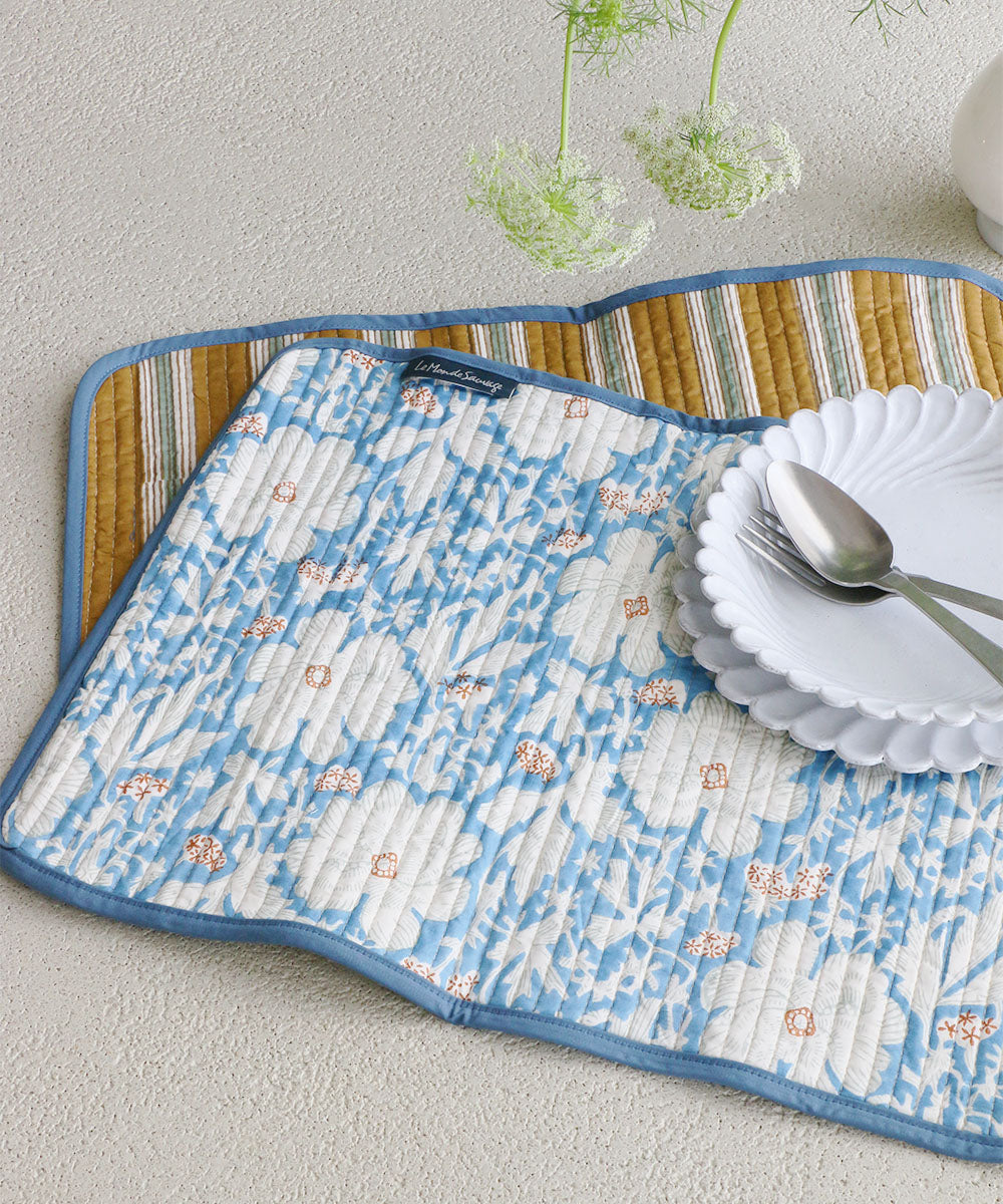 コットンキルティングのリバーシブル・ランチョンマット。