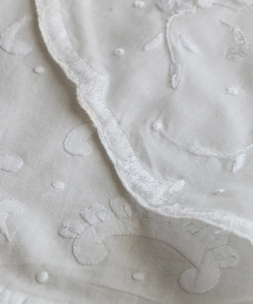繊細なホワイトワーク刺繍を施しています。