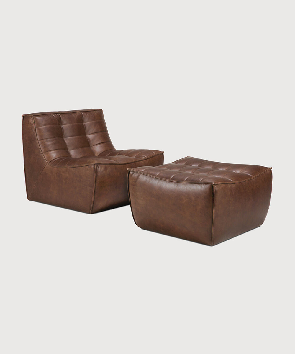 エスニクラフト N701ソファ・フットスツール・レザー・チェスナット【取寄せ品】