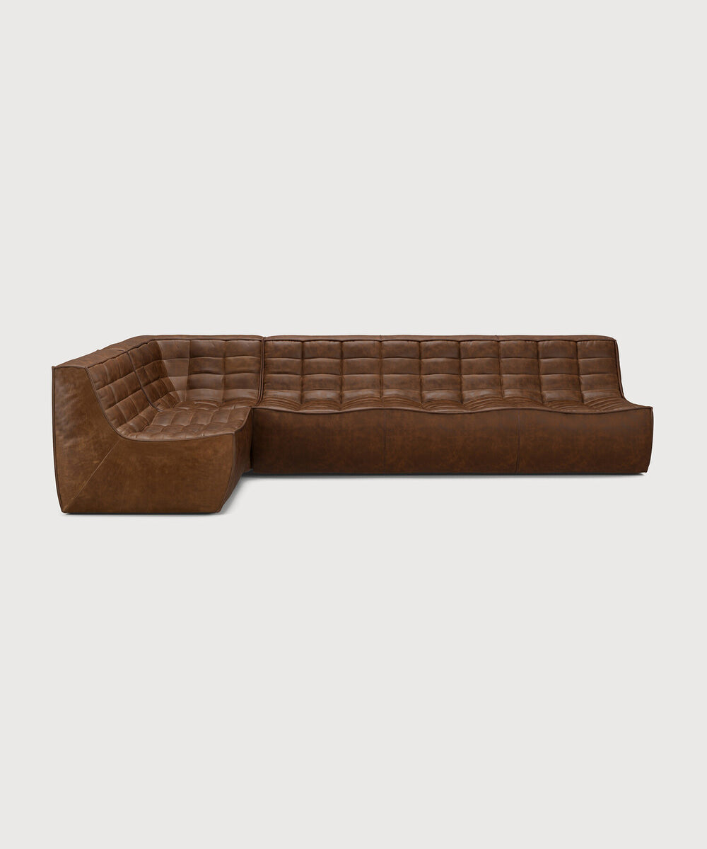 エスニクラフト N701ソファセット<3+1シーター+ 90°スクエアコーナー>レザー・チェスナット【取寄せ品】