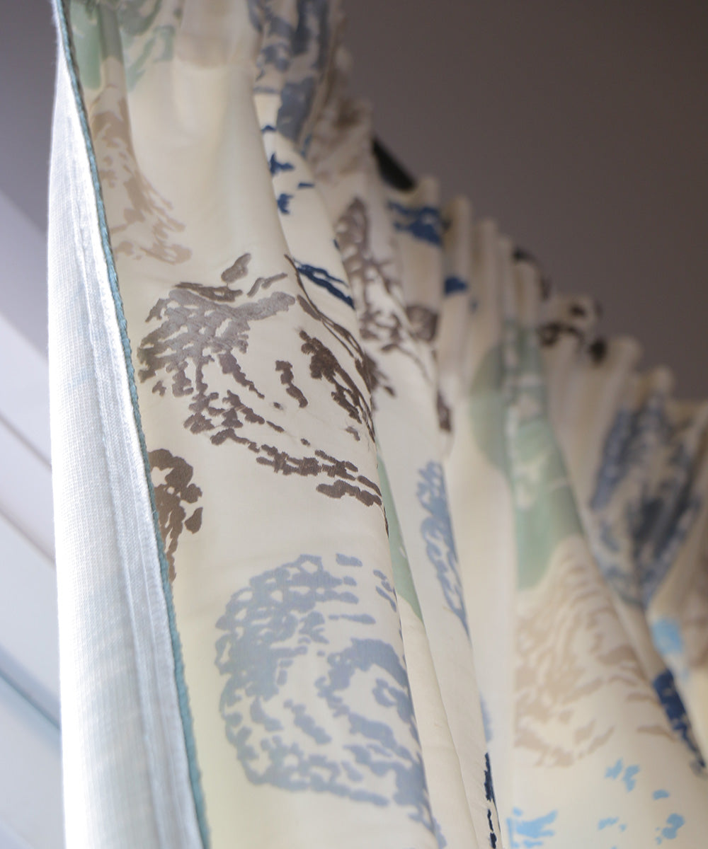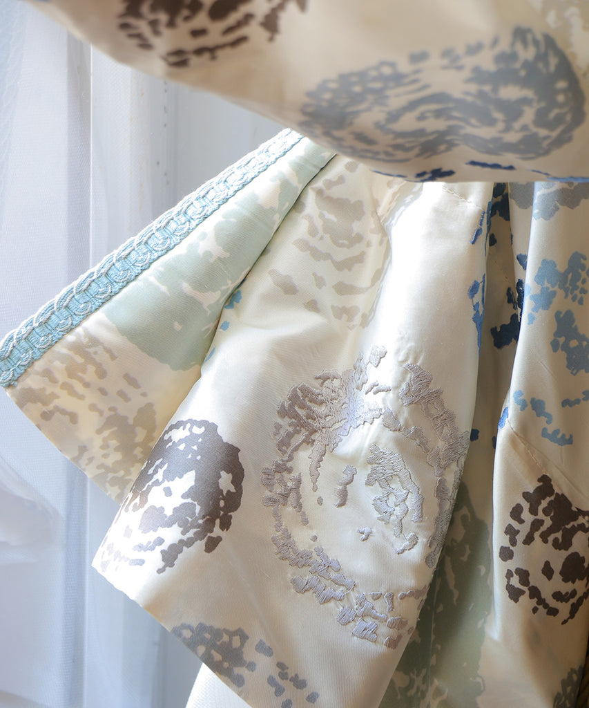 José Leite de Castro オーダーカーテン・シルク100%プリント&刺繍(2枚)