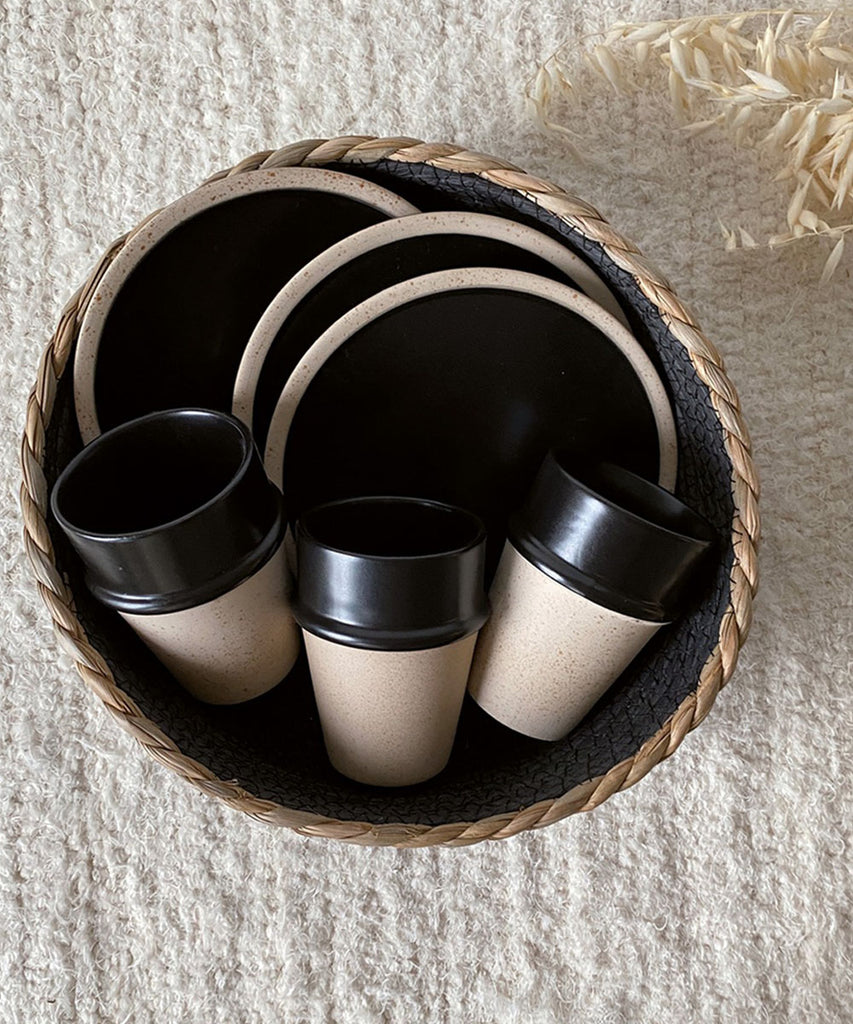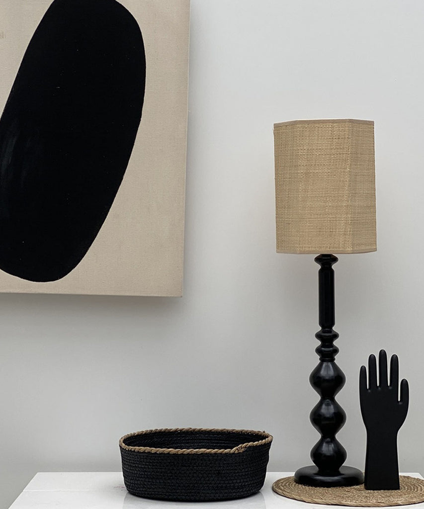 ブラックのベースに、ナチュラルなラインを施したデザイン。